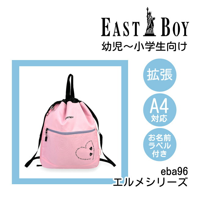 ナップサック 女の子 体操服入れ プールバッグ リュック かわいい おしゃれ eba96 EASTBOY イーストボーイ エルメ 拡張ナップサック A4 B4