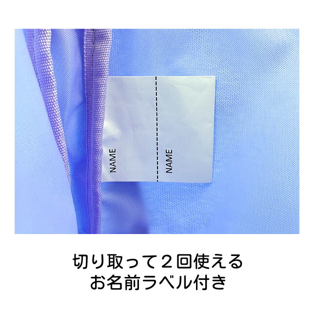 内側には迷子や荷物の紛失時にも安心・安全なお名前ラベル付き。