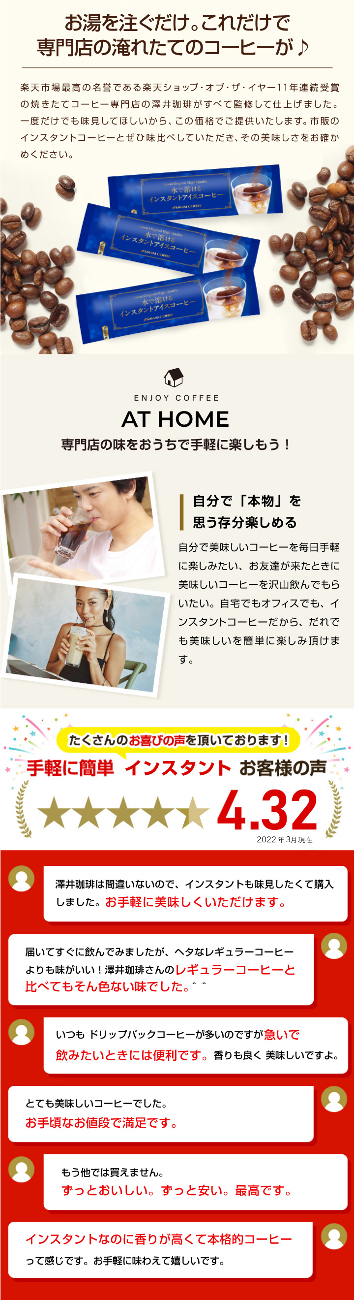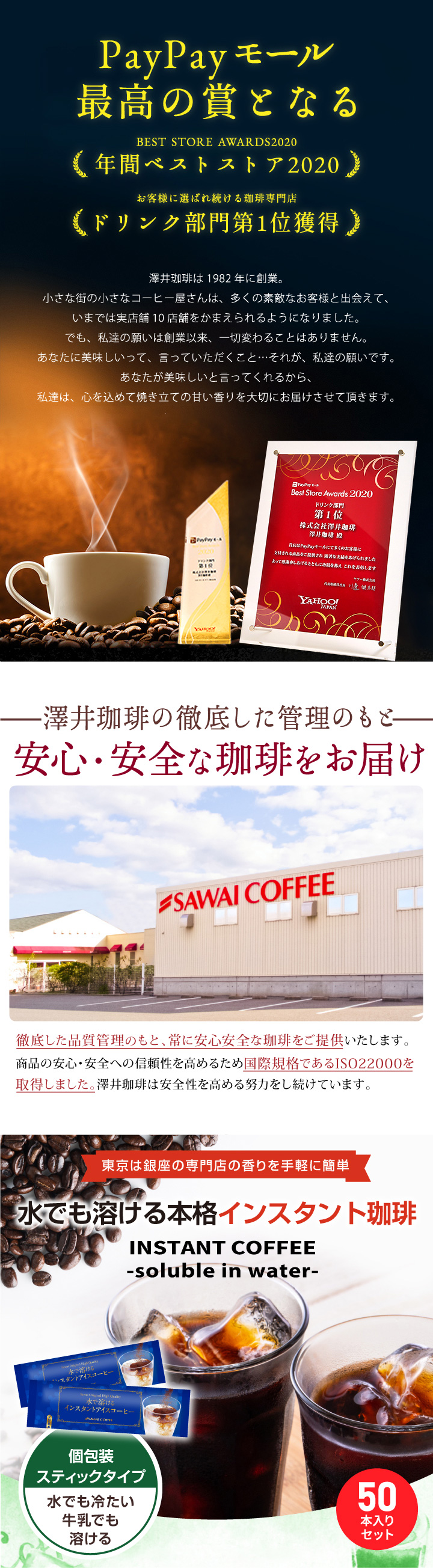 澤井珈琲 水で溶けるインスタントアイスコーヒー スティックタイプ 50本入り