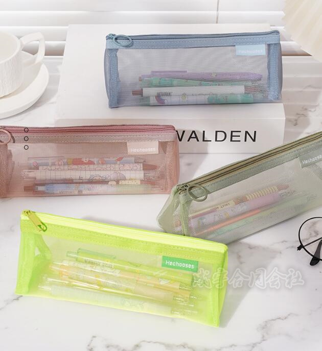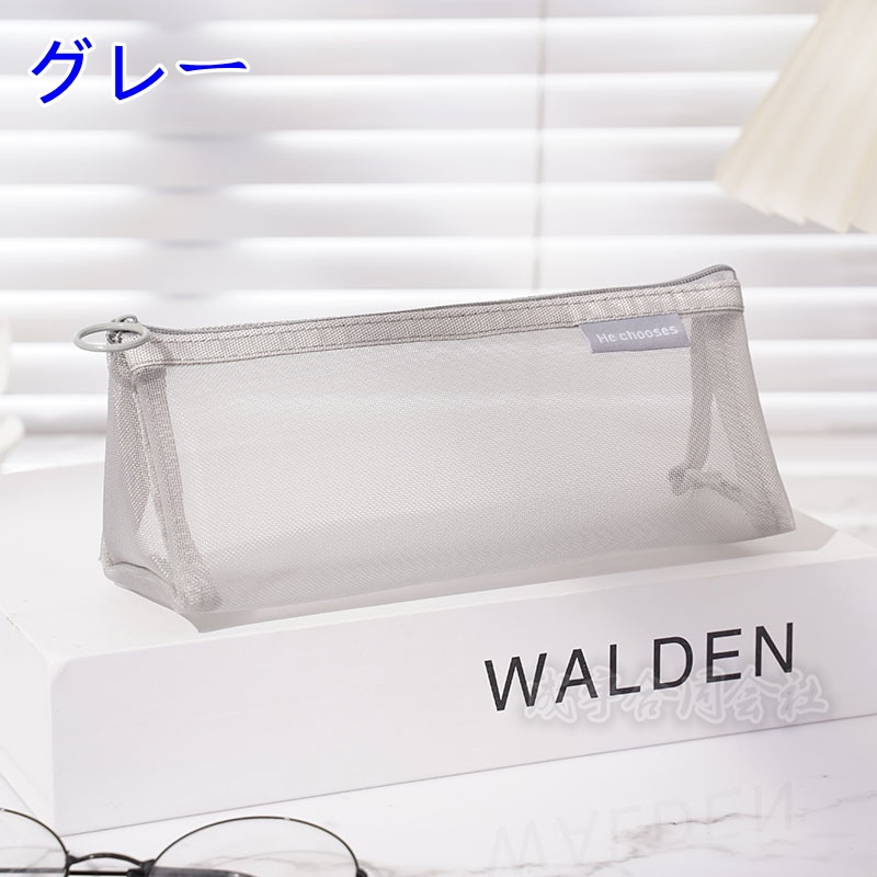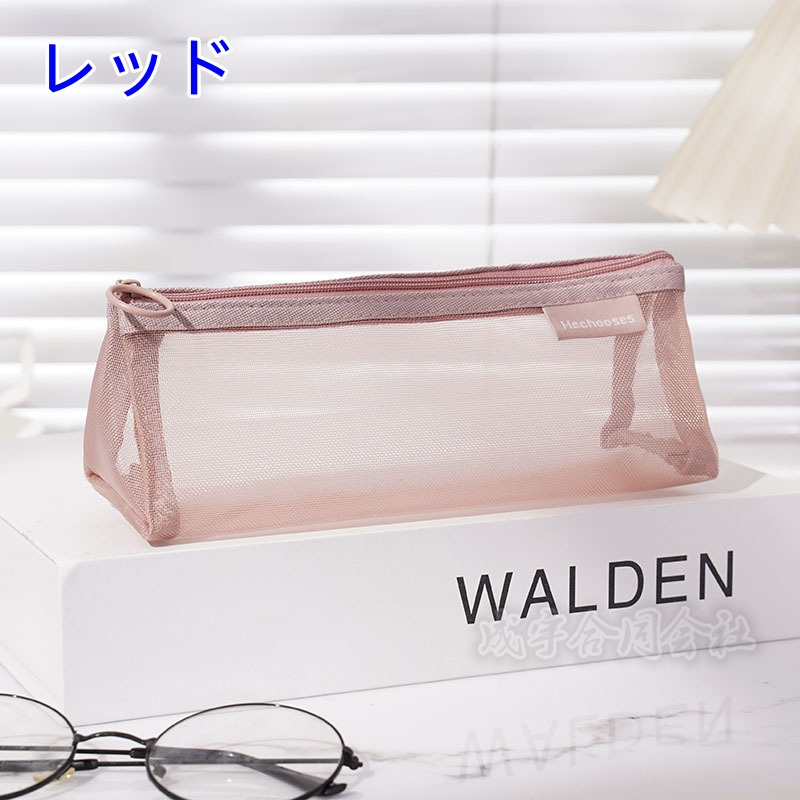 メッシュ クリア 化粧品収納/小物入れポーチ 筆箱 ペンケース
