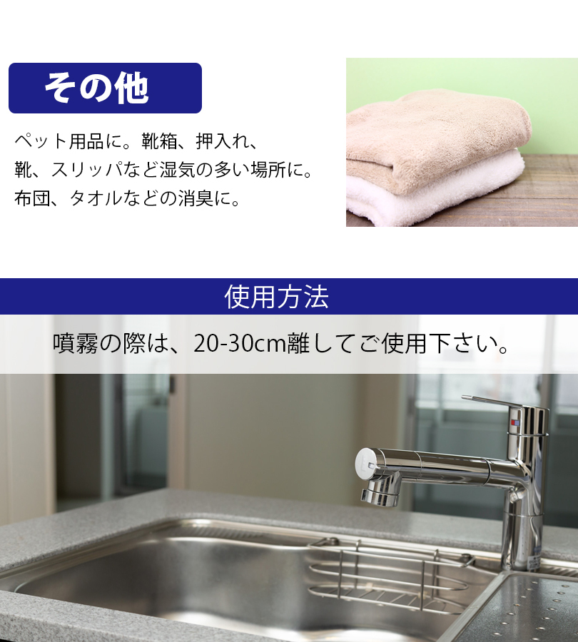 また、消臭成分もあり靴箱・ペットのかご・ベッド・トイレの防臭にも役立ちます。