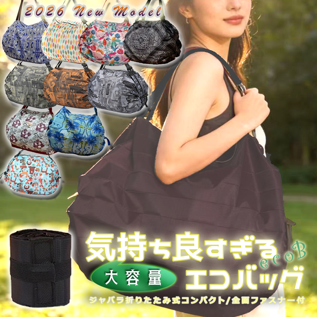 エコバッグ 大容量 折り畳み ファスナー付き おしゃれ 大きめ マチ マチ付き 折りたたみ 丈夫 コンパクト メンズ 防水 NEW ecoB エコビィ