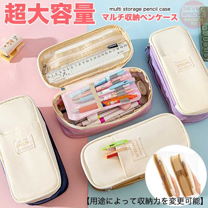 【たっぷり入る最大90本収納!マチが広がる多機能ペンケース】
