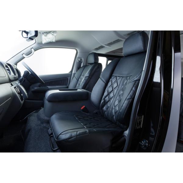 ハーツ(Hearts) 3Dバケットシートカバー5人乗り 1台分セット NV350キャラバンプレミアムGX用【ブラックステッチ】
