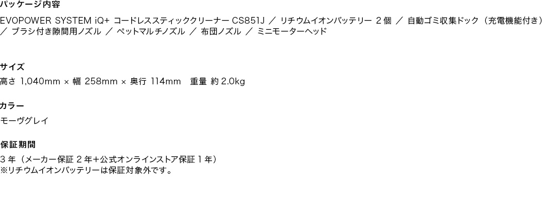 3年(メーカー保証2年+公式オンラインストア保証1年) ※リチウムイオンバッテリーは保証対象外です