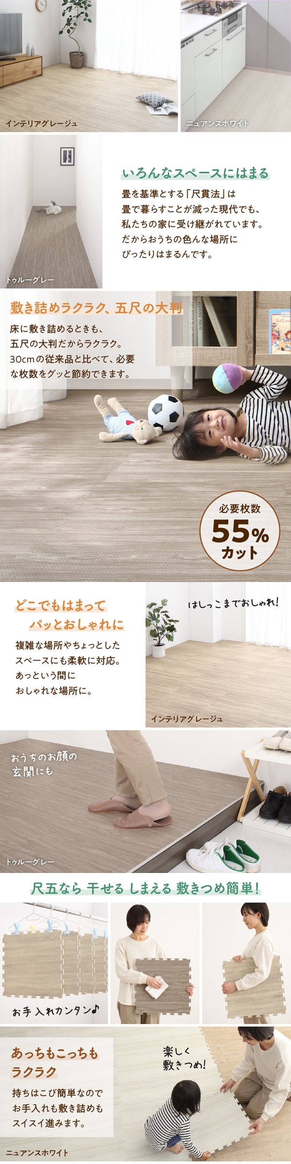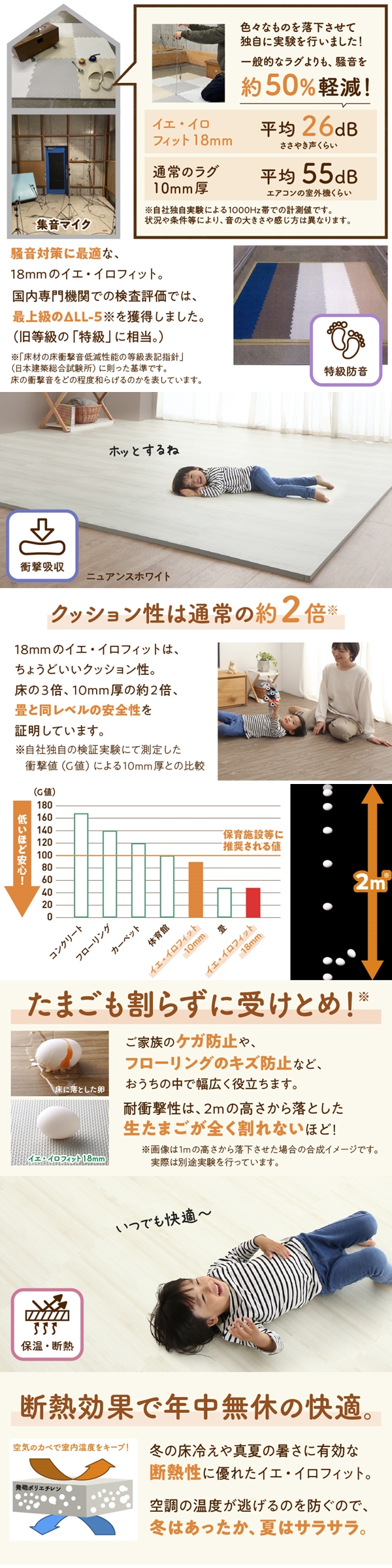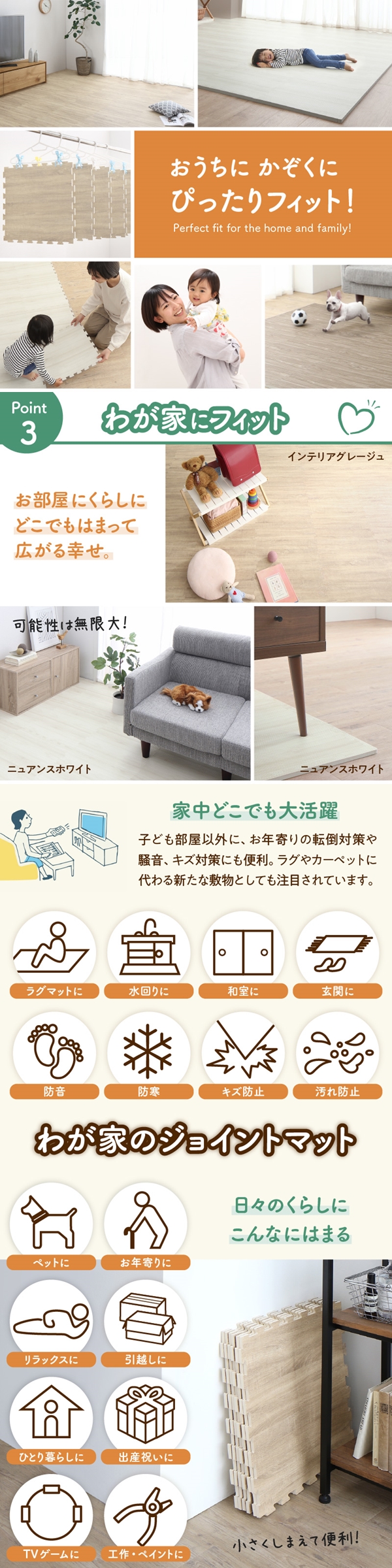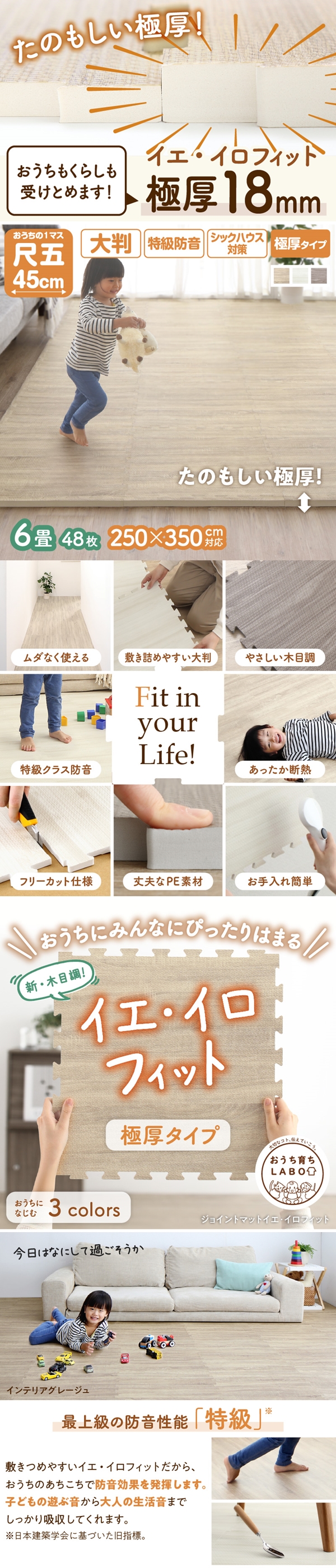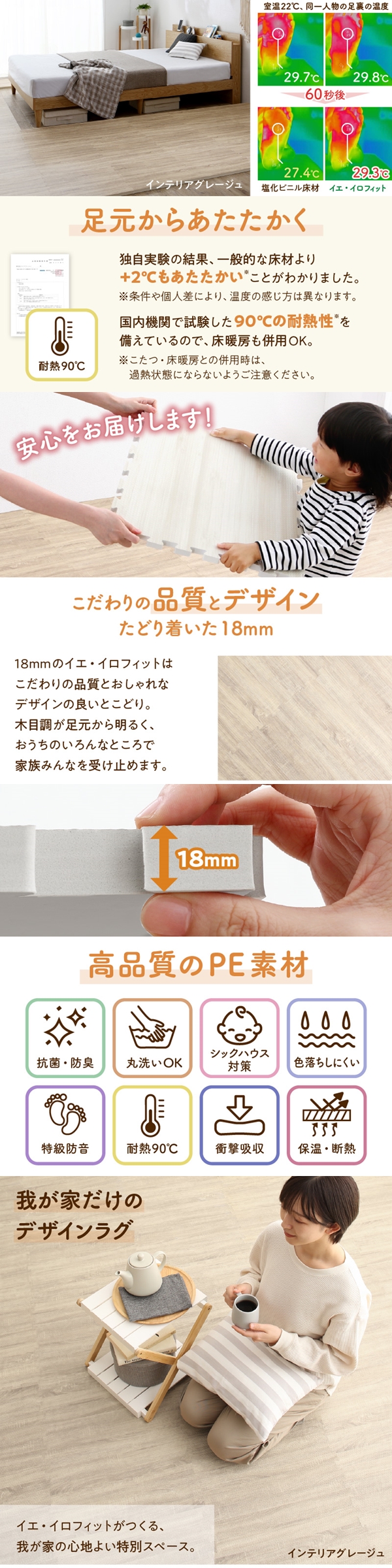 ジョイントマット ジョイント マット 木目 木目調 大判 厚手 フロアマット プレイマット フローリング 防音 床暖房 フリーカット 6畳 18mm厚
