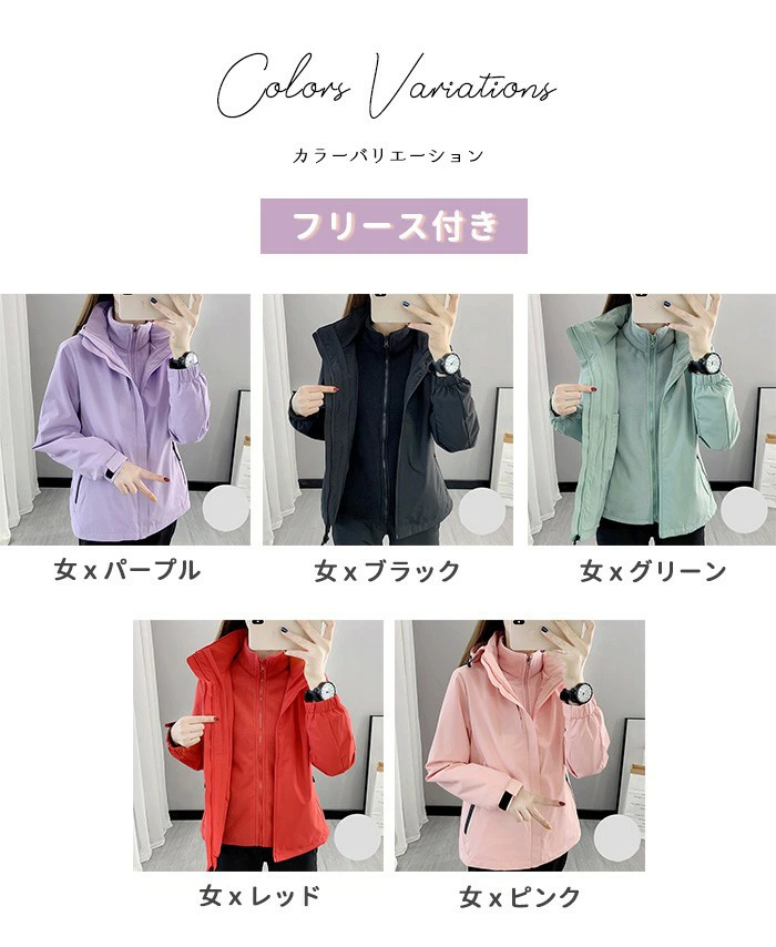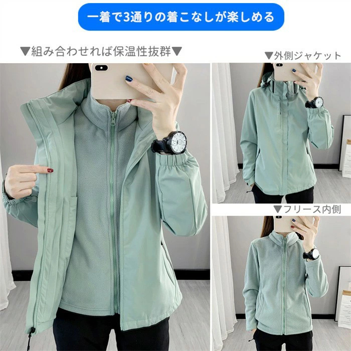 マウンテンパーカー レディース メンズ 3way ジャケット フリース付き アウター 秋冬 防寒 防風 撥水 通勤 通学 アウトドア 登山 キャンプ カジュアル おしゃれ