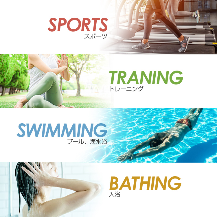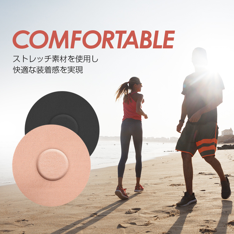 肌にしっかり固定することができ、スポーツやトレーニング、プールや入浴等も気軽に行うことができます。