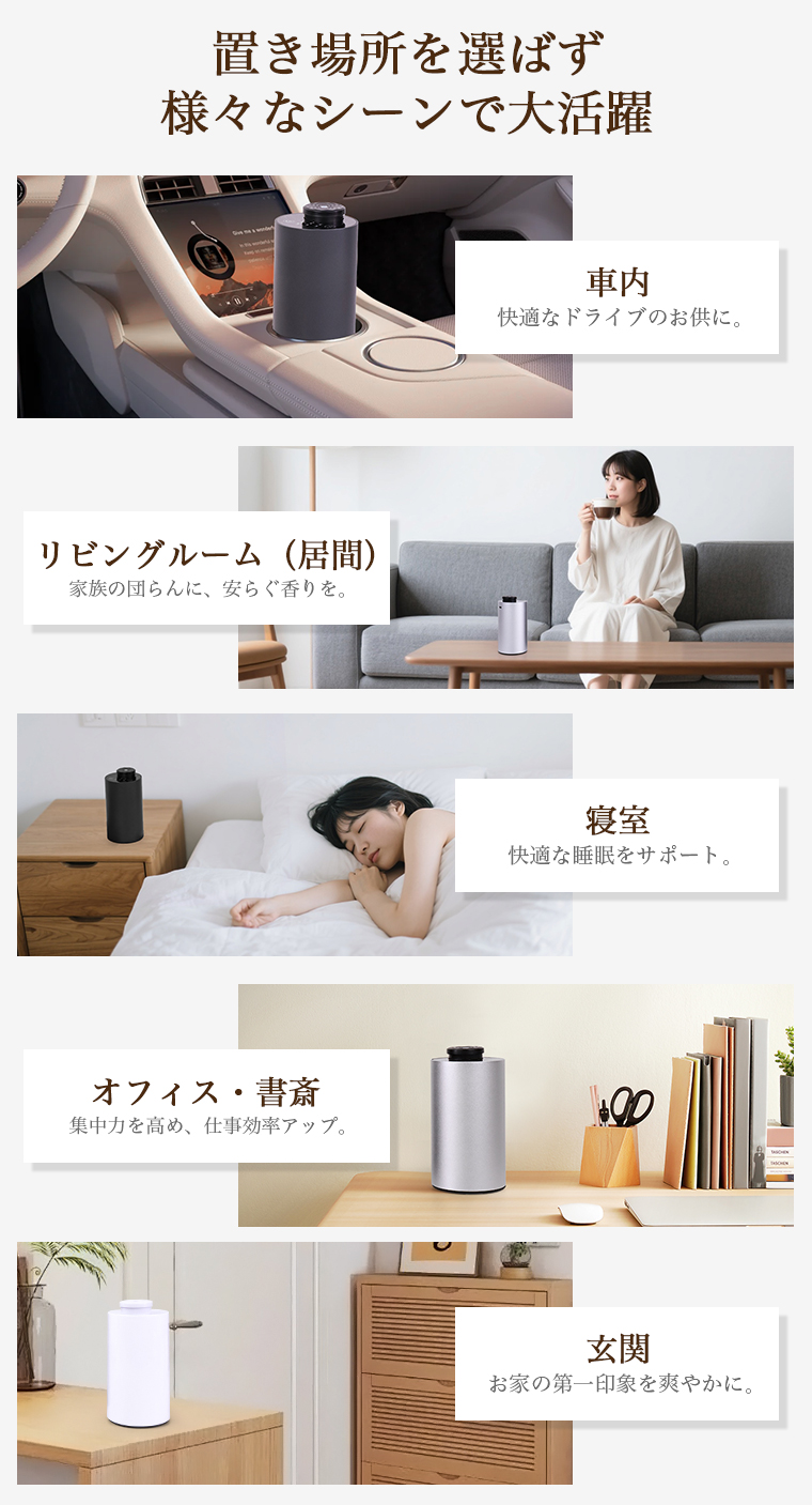 2026年 アロマディフューザー 水なし コードレス 3段階 タイマー機能 2000mahバッテリー 水を使わない アロマ 充電式 オイル漏れ防止 車用 爆買 超p祭