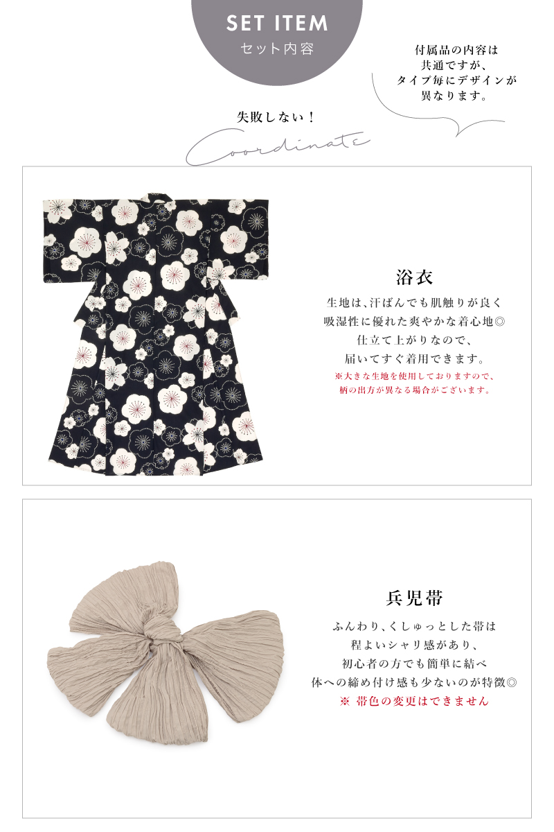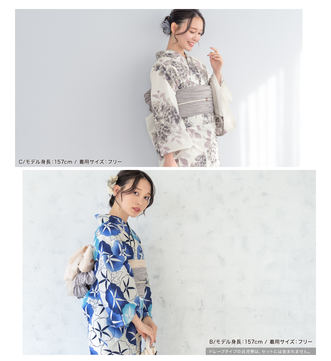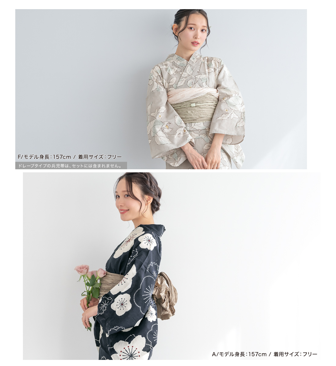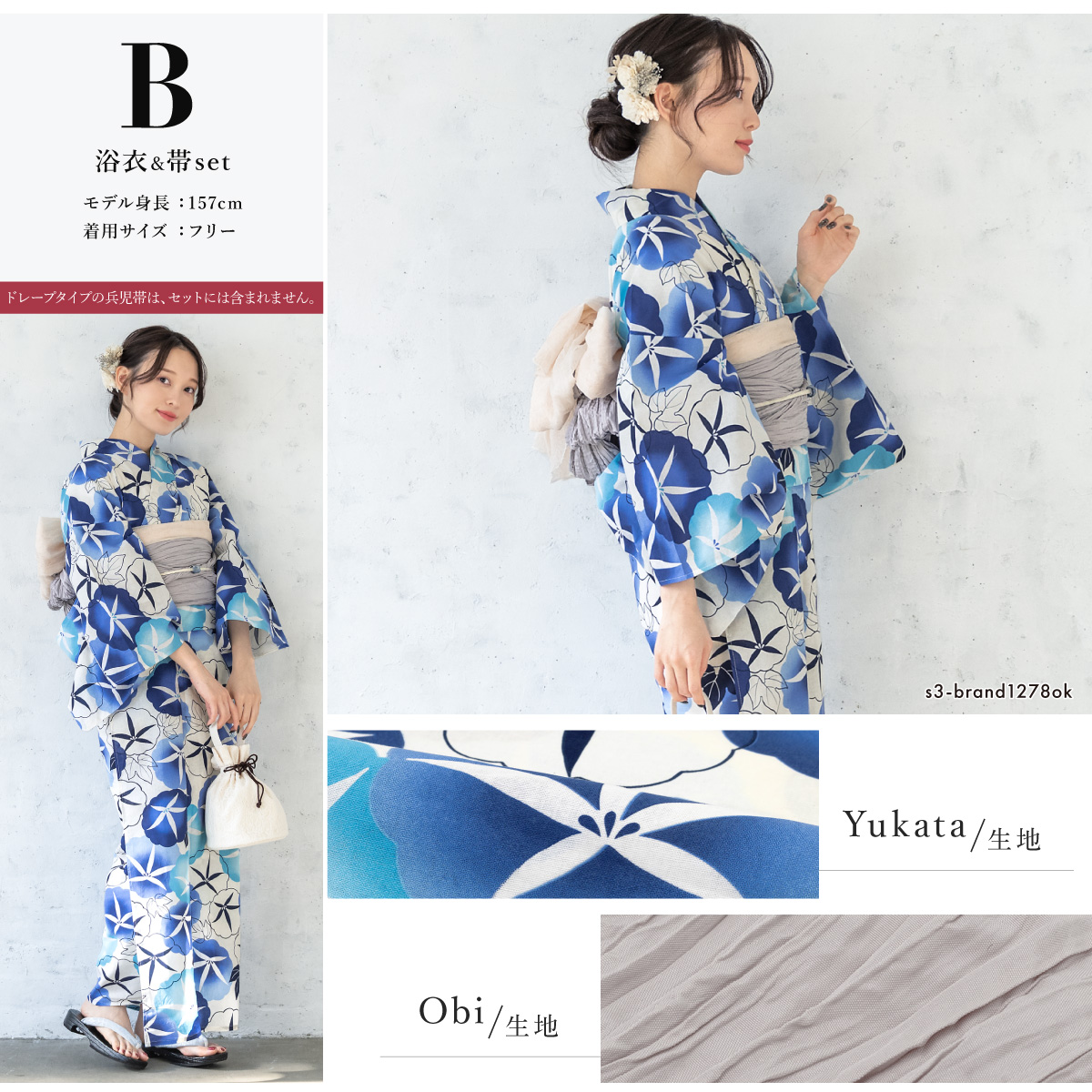 ※こちらの商品は、浴衣・帯の2点セットです。セット内容の一部変更や、それに伴う値引きは承っておりません。