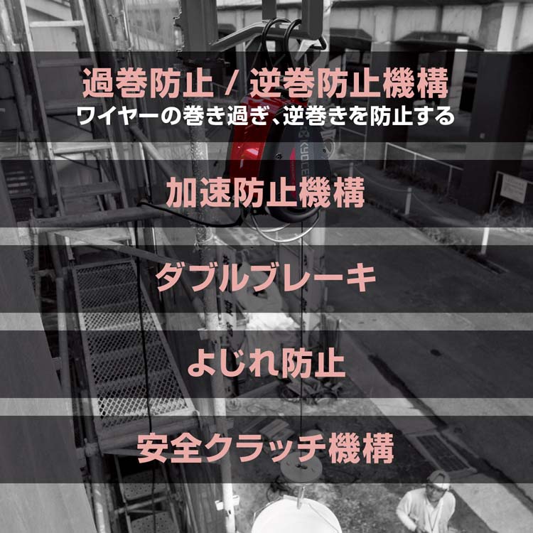 ・付属品:操作スイッチ(コード20m)・ワイヤーロープ(径4mm*31m)・ウェイト・スイベルフック