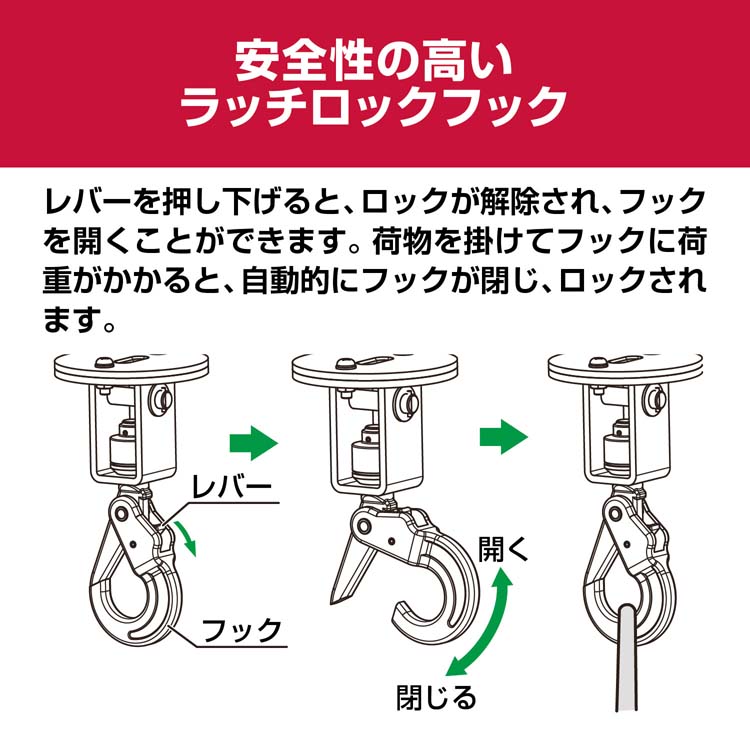 ・荷物は確実に固定し、昇降作業は荷物が垂直に動くようにしてください。