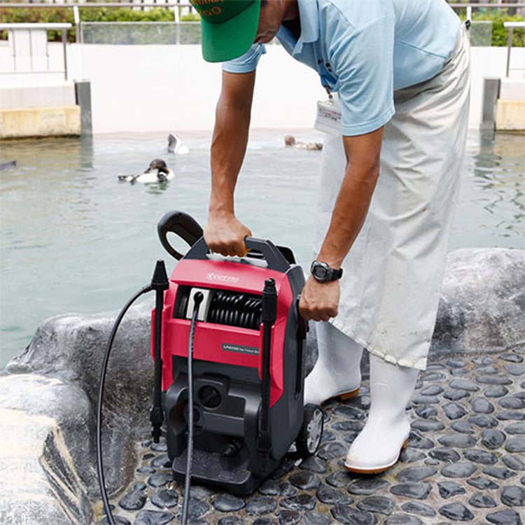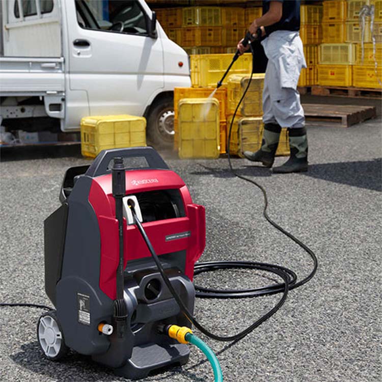 ●ガイド付きホースリールで15mの長い高圧ホースをスッキリ収納できます。
