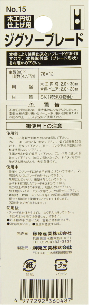 SK11 ジグソーブレード No.15 円切仕上げ 360481に関する詳細なお問合せは下記までお願いします