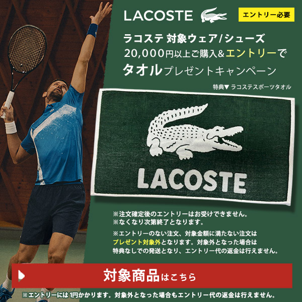 ラコステの対象ウェア・シューズを20000円以上購入+エントリーでタオルプレゼントキャンペーンエントリー