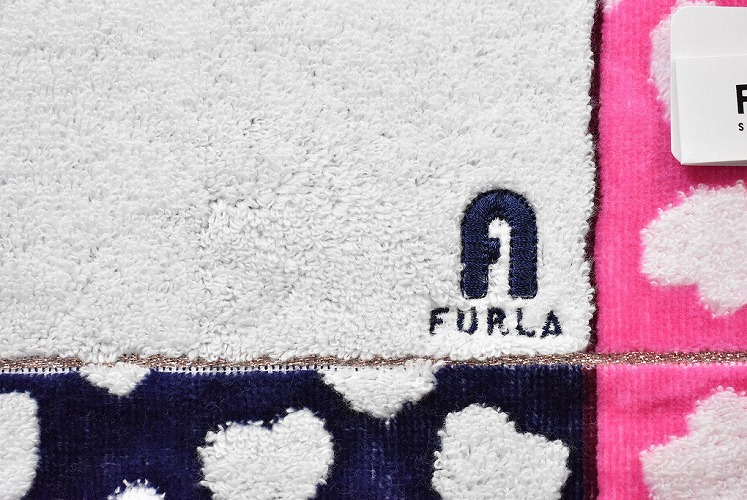 フルラ タオルハンカチ ミニタオル 1枚 レディース ブランド ホワイト ネイビー ピンク ハート ロゴ 刺繍 女性 婦人 ハンドタオル