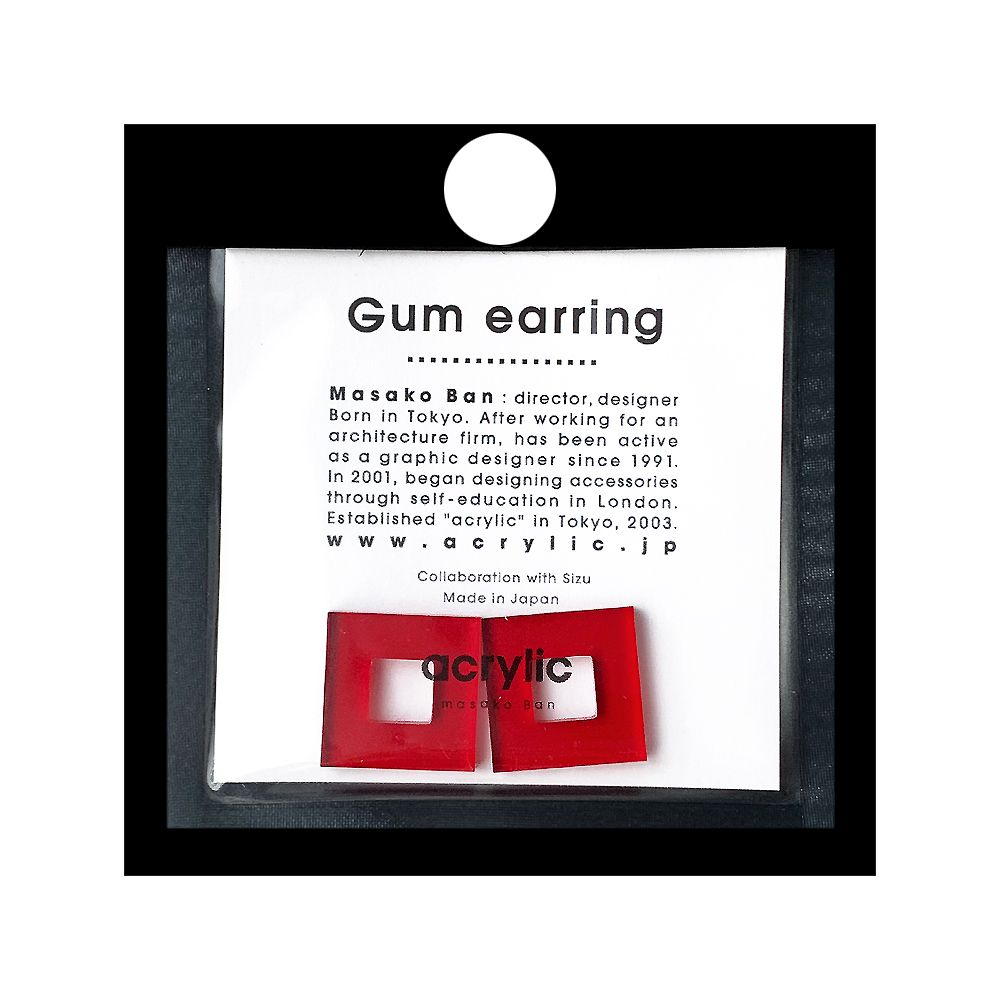 シンプルなデザインのアクリルをカラフルなGUMにセットすることで、スパイスの効いたスタイリッシュでモダンなイヤリングが完成します。