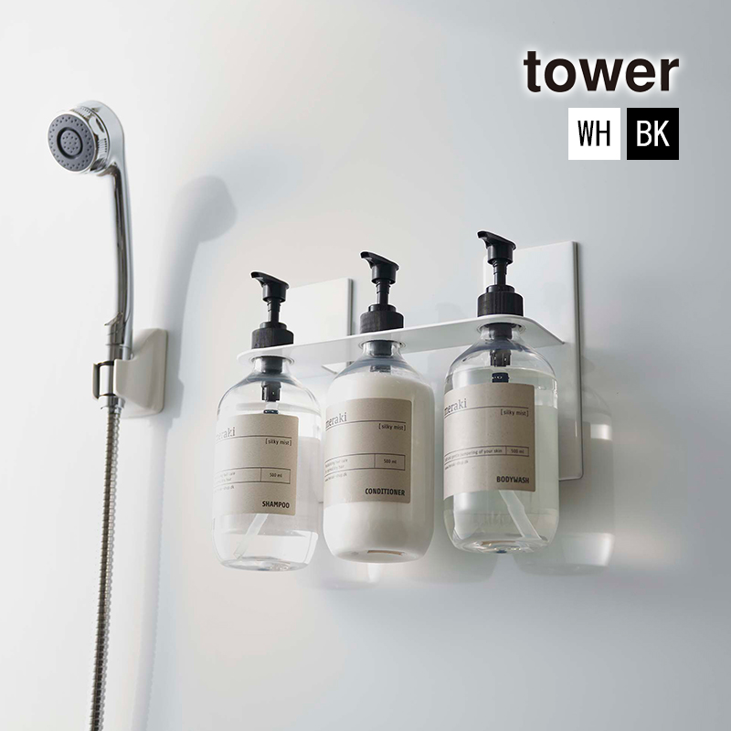 マグネットディスペンサーホルダー TOWER(タワー)3連 シャンプーボトルホルダー ボデ…