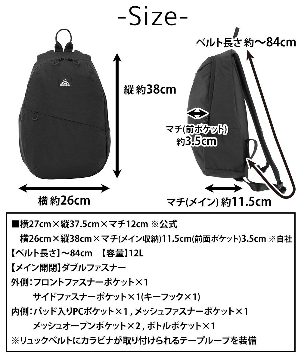 自社採寸サイズ 横26cm×縦38cm×マチ(メイン収納)11.5cm(前面ポケット)3.5cm