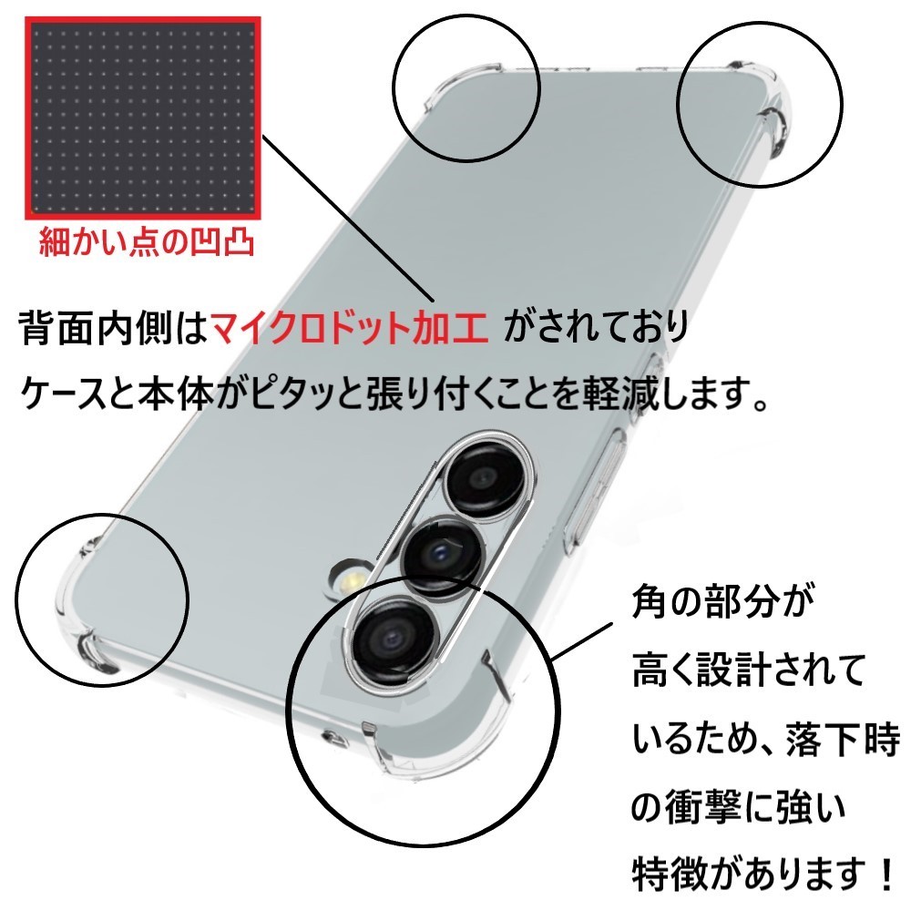 ケースの内側はマイクロドット加工がされており、スマホ本体とケースーの密着を防ぎ粘着痕を軽減します。