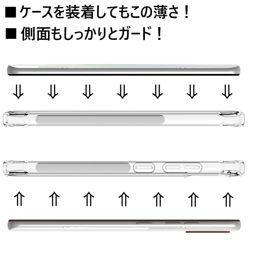 透明度の高いクリアケースなので、スマホケースを装着していることがわからないほどの見た目で、 スマホ本体の特徴や色を損ないません。
