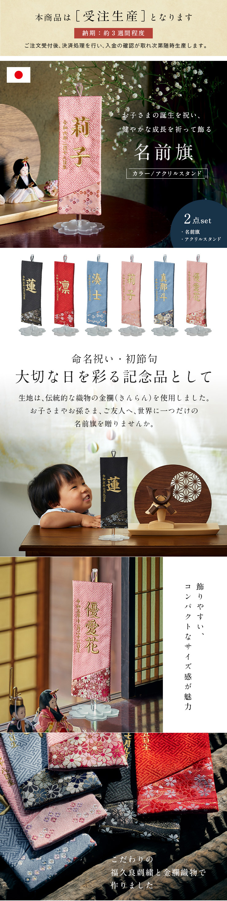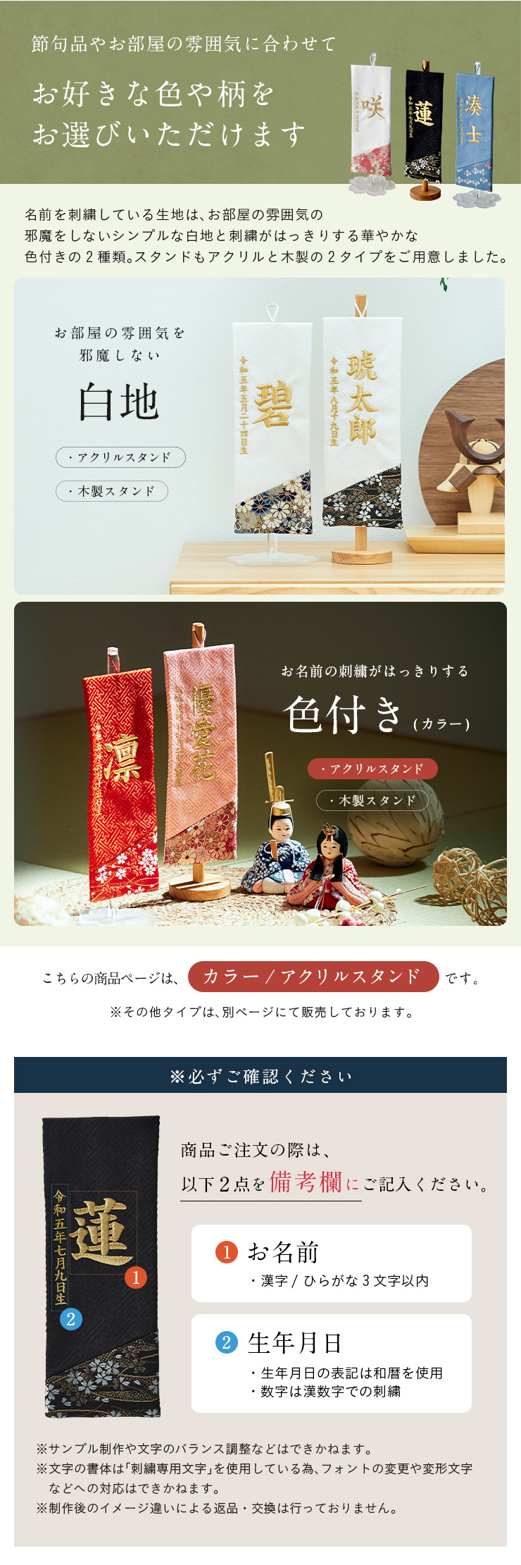 名前旗 名前札 男の子 女の子 ひな祭り 刺繍 節句 日本製 五月人形 こどもの日 初節句 お雛様 端午の節句 桃の節句 雛祭り カラー/アクリルスタンド 名入れ無料