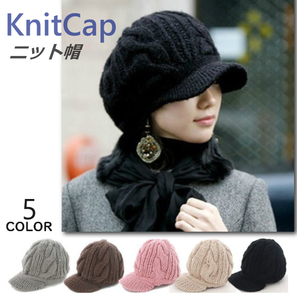 ニットキャップ レディース つば付き ニット帽 大きめ 冬 大きい