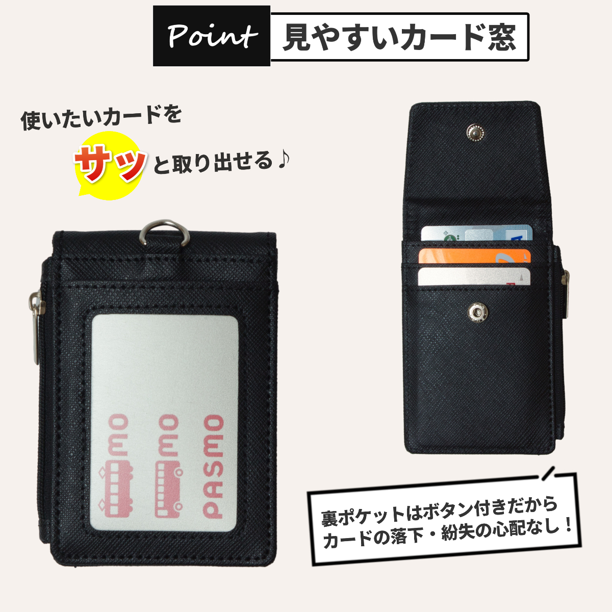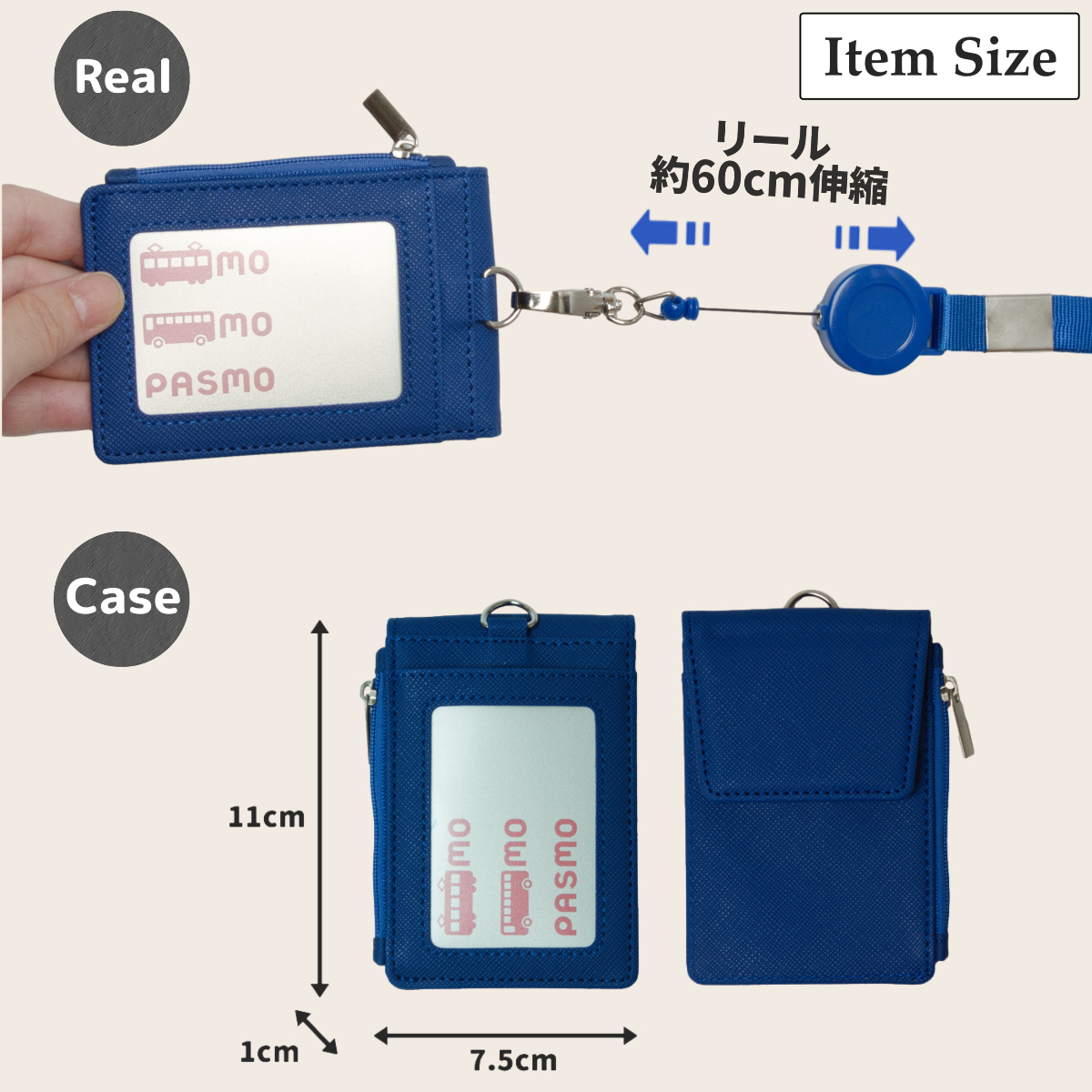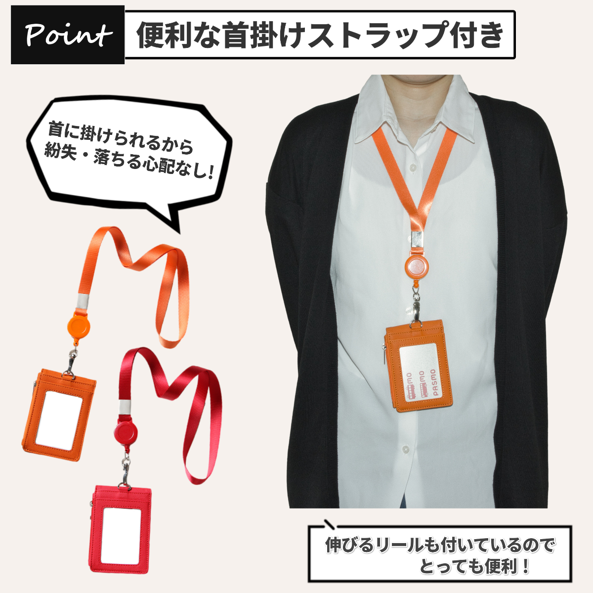 パスケース リール付き ストラップ メンズ レディース カードケース ネックストラップ 薄型 定期入れ 落ちない icカード カードホルダー 改札 縦型 両面 電車