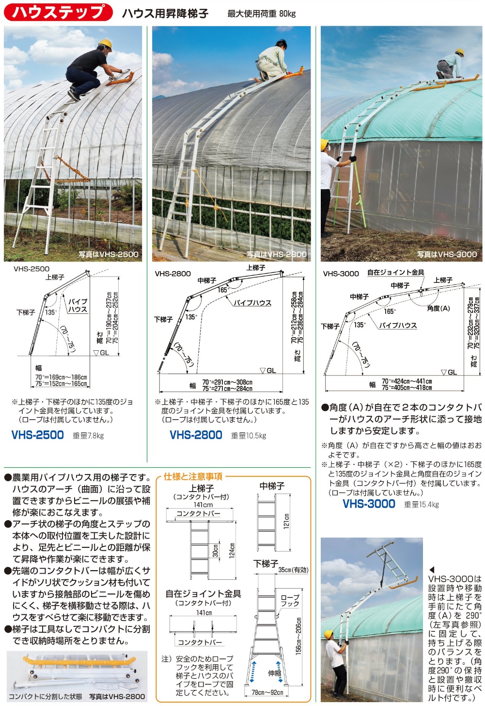 ●農業用パイプハウス用の梯子です。アーチに沿って設置できますからビニールの展張や補修が楽におこなえます。