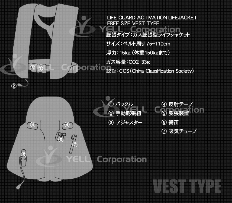 ライフジャケット 大人 手動膨張式 ベスト ネイビー ライフガード