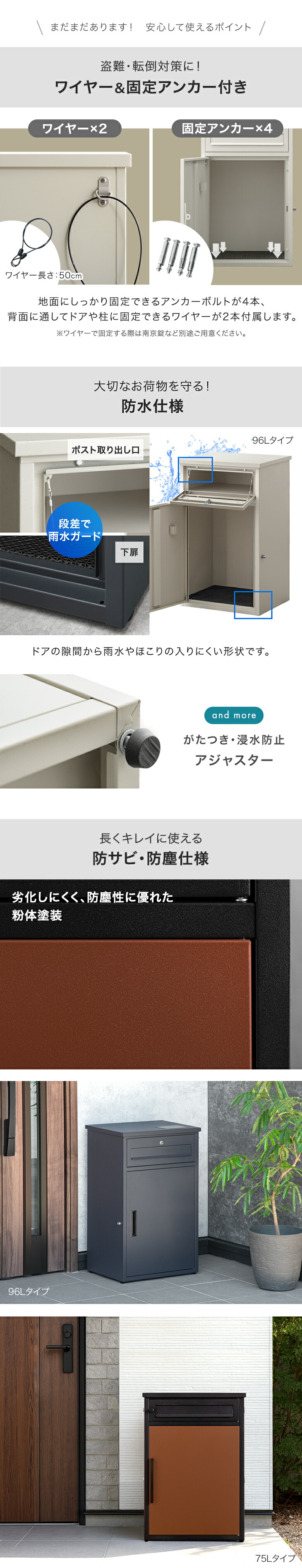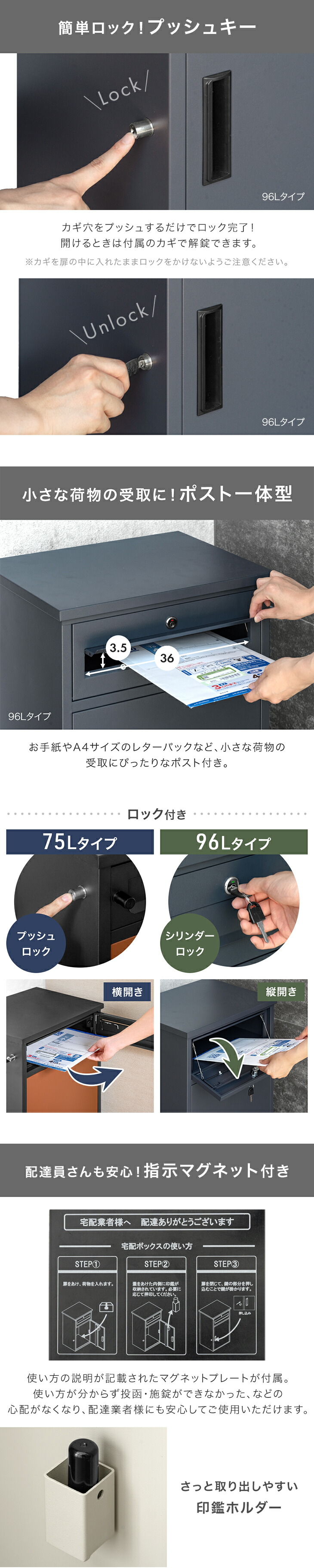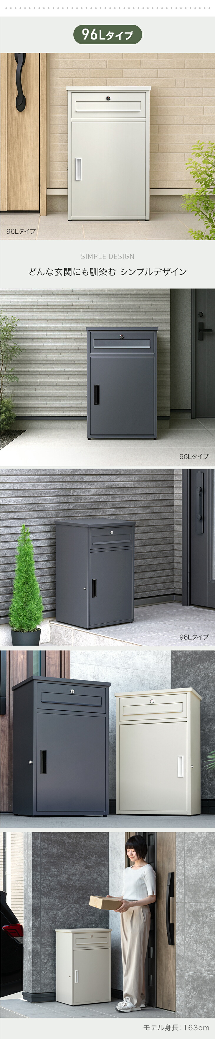 宅配ボックス 戸建 ポスト 大型 防水 屋外 96L 置き配ボックス ポスト一体型 大容量 複数投函 宅配box 置き型 北欧 おしゃれ 鍵付き スリム ポスト