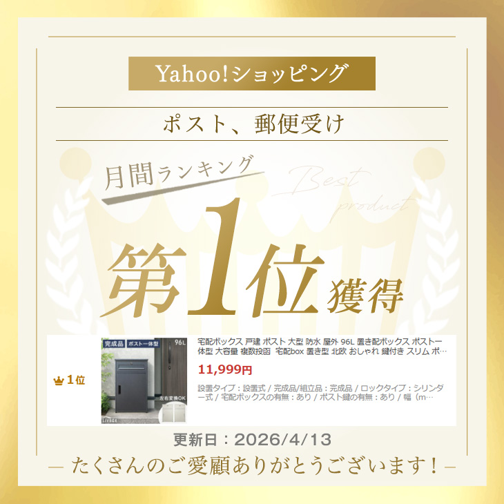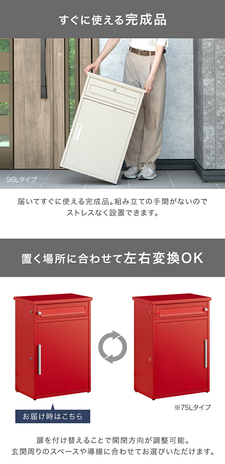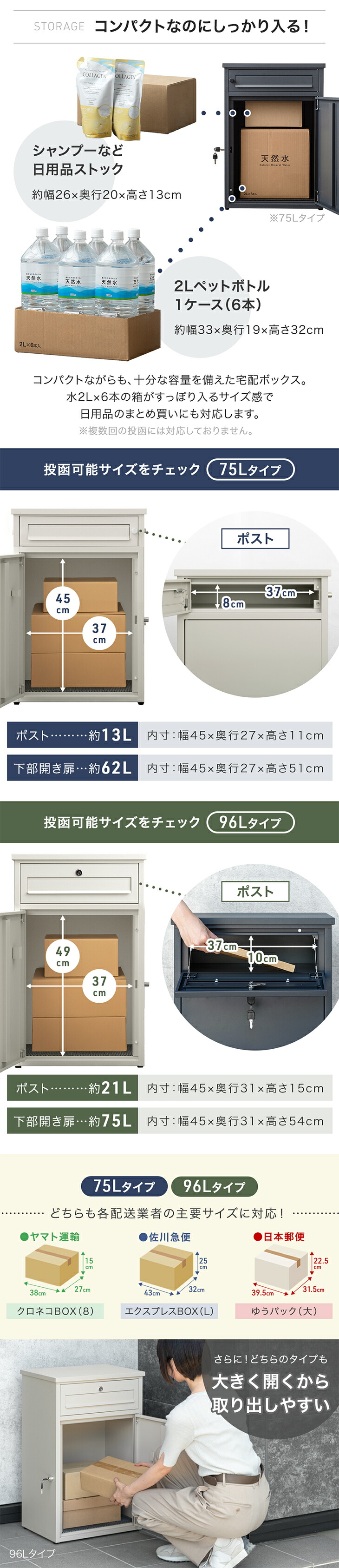 宅配ボックス 戸建 ポスト 大型 防水 屋外 96L 置き配ボックス ポスト一体型 大容量 複数投函 宅配box 置き型 北欧 おしゃれ 鍵付き スリム ポスト