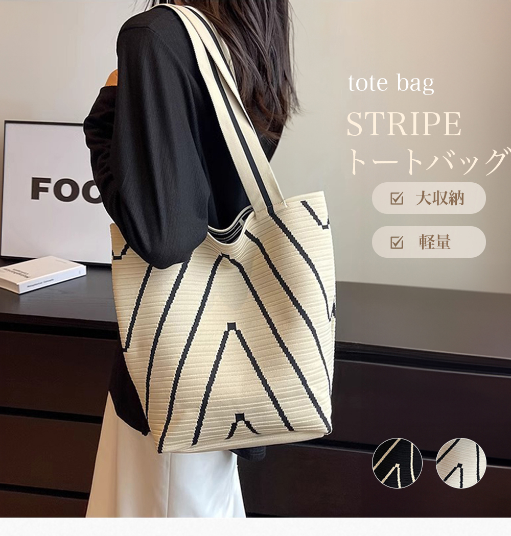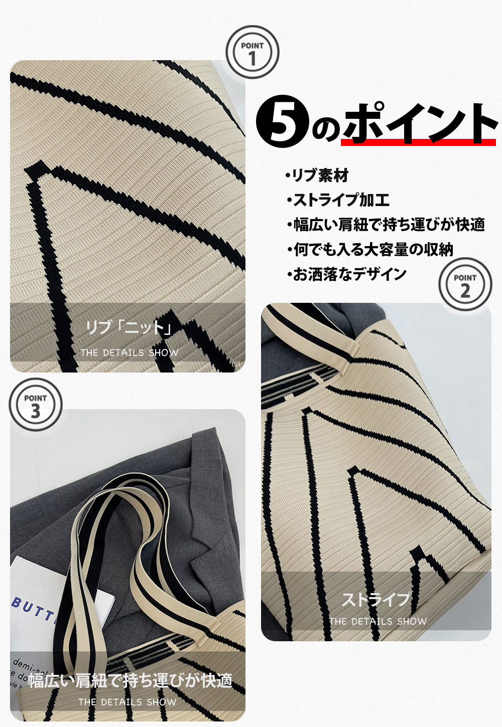 トートバッグ レディース 大容量 大きめ 軽い 肩掛けバッグ ストライプ マザーズバッグ 軽量 手提げバッグ ニットバッグ トート A4 通勤 通学 旅行 爆買