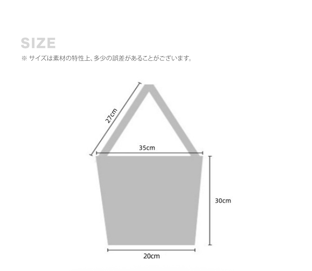 横幅:約(上)35cm, 約(下)20cm / 高さ:約30cm / 持ち手高さ:約26cm / 持ち手長さ:約60cm