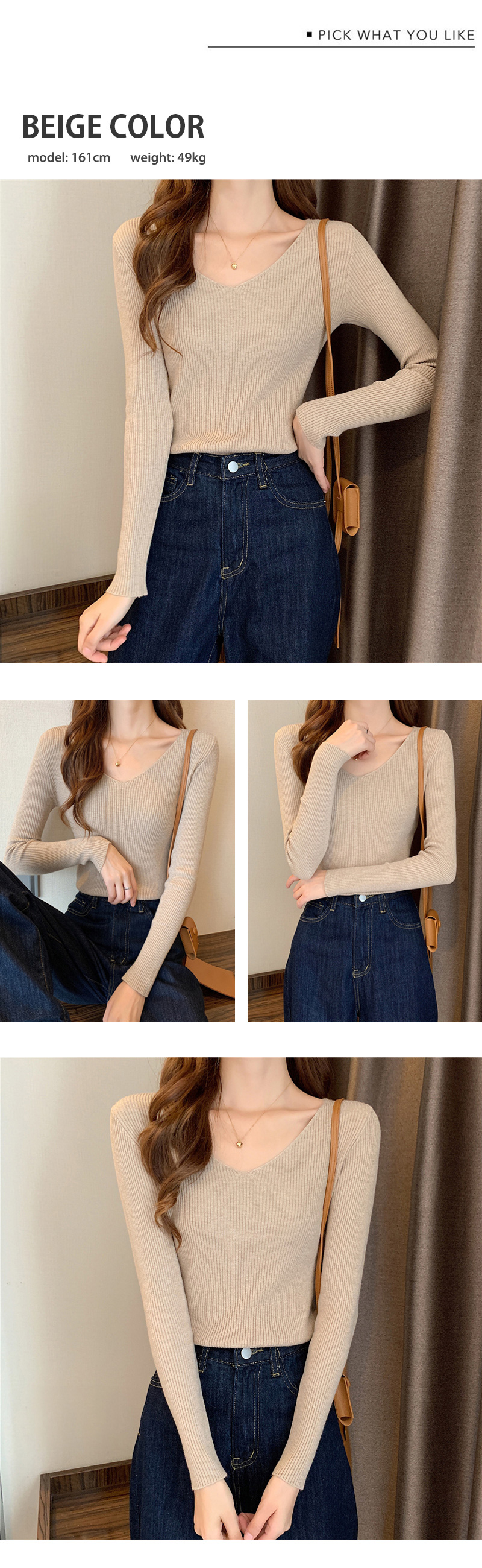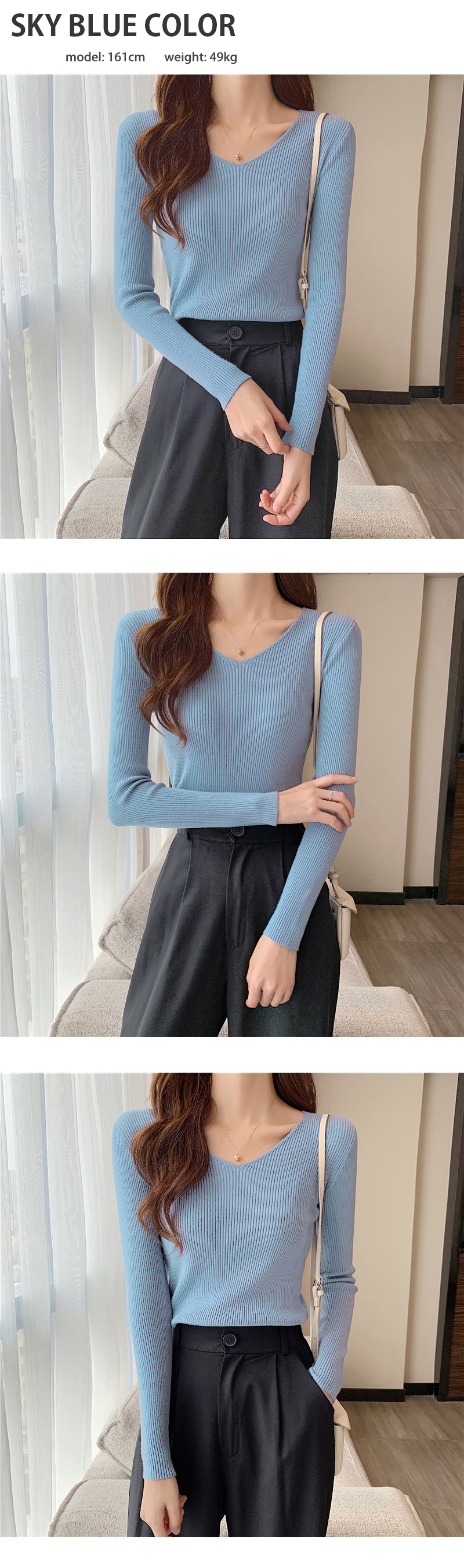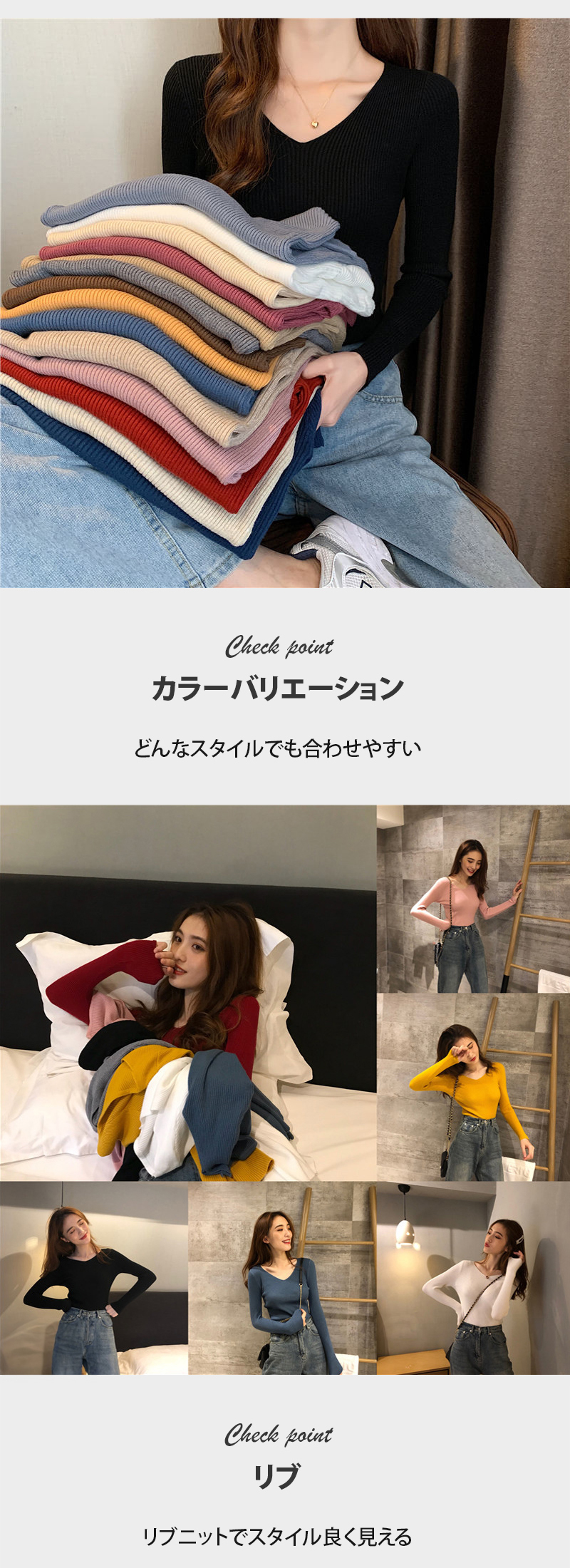 ニット カットソー レディース リブニット トップス セーター 長袖 リブセーター Vネック 長袖ニット プルオーバー インナー おしゃれ かわいい ストレッチ 爆買