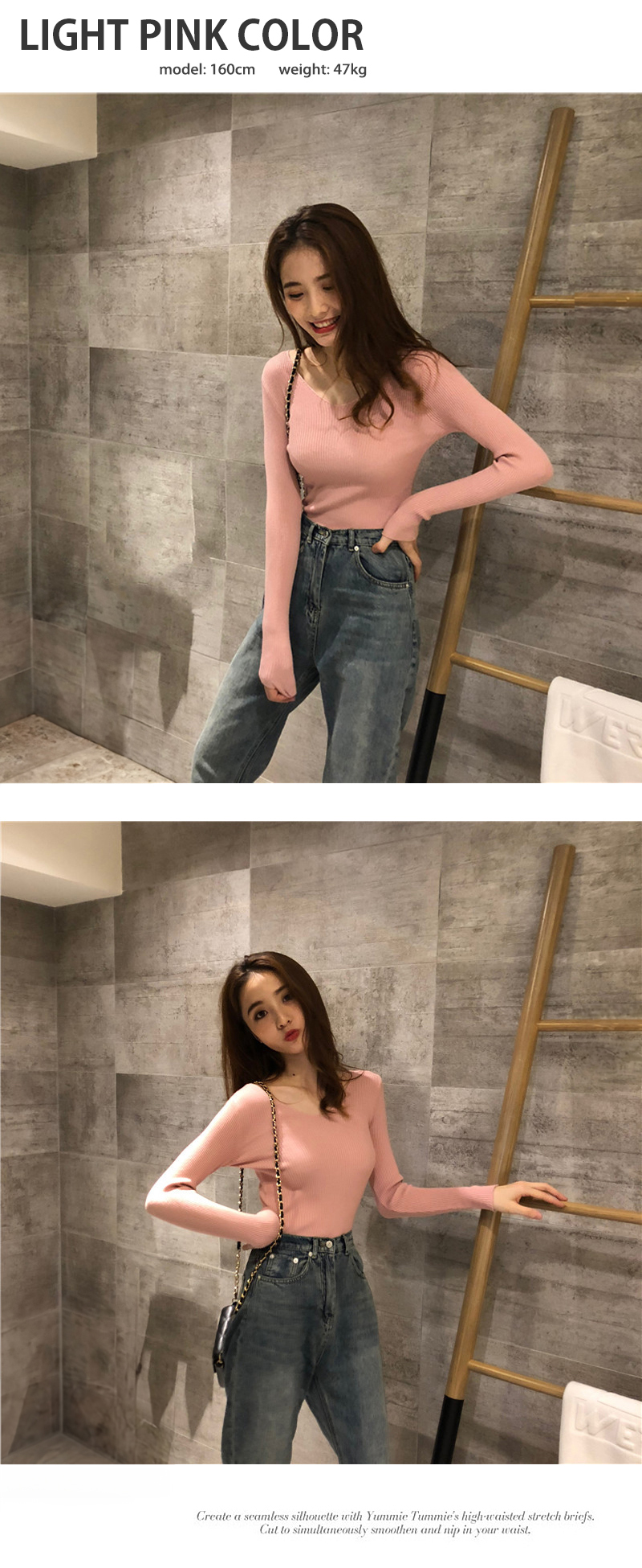 毎日のコーディネートに取り入れやすい、シンプルなリブニット。
