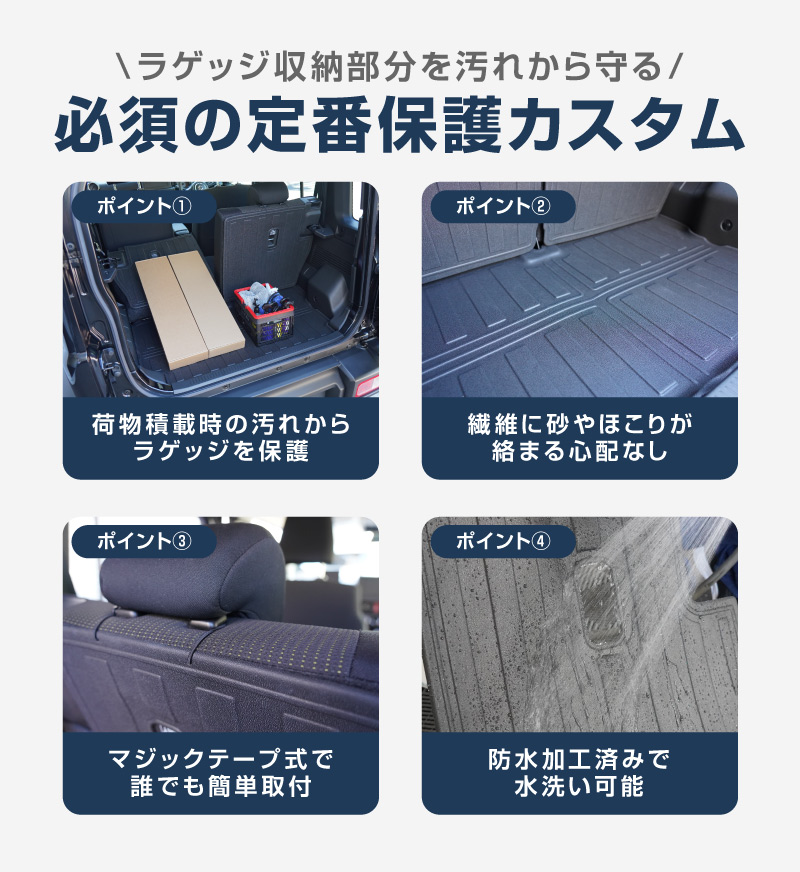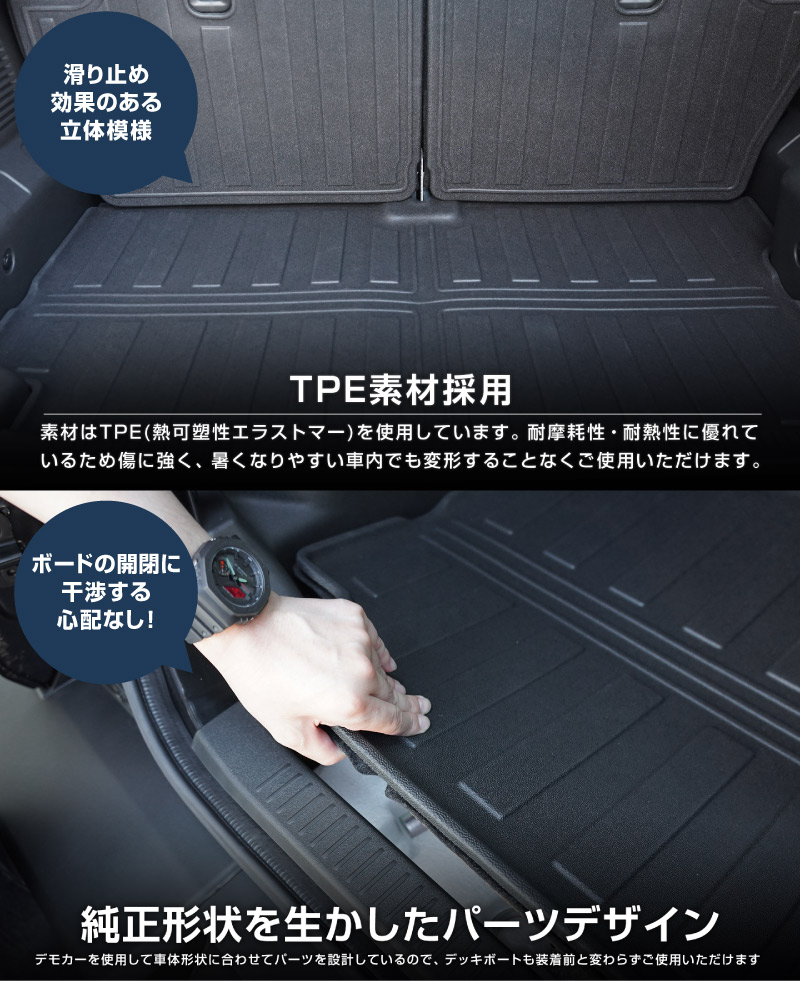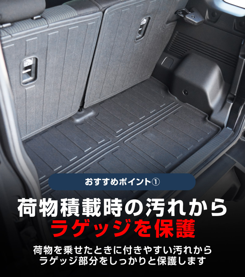 車種専用だからフィット感は抜群。シートやラゲッジの形状にしっかり沿い、機能性を損なうことなく広範囲をカバーします。