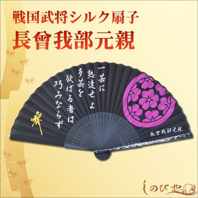 ■商品名 戦国武将家紋入り 高級シルク扇子 『長曾我部元親』