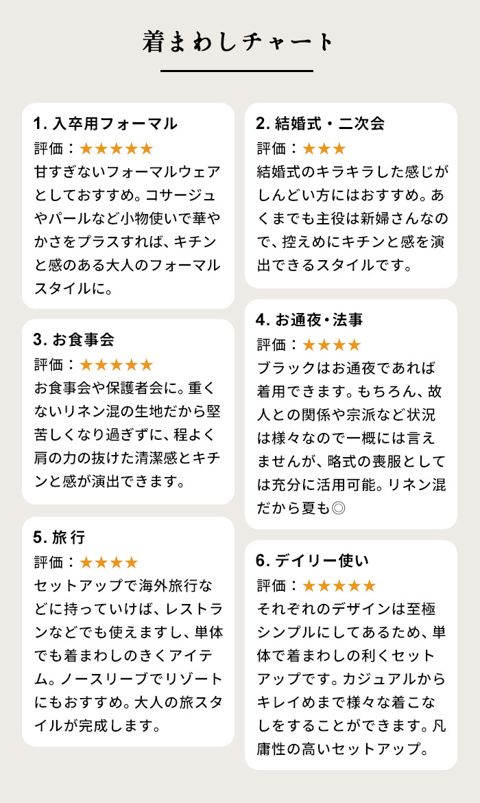 冠婚葬祭からデイリーまで使えるフランダースリネンコットンの上質セットアップ。当店のこだわりの「その時だけじゃない」フォーマルウェア。「上品に見える事」「長く着ても疲れない事」「デイリーにも使える事」TBではその3点に重きを置いています。その時だけ着るというのは、本当に勿体ないですからね。今回使用した生地はフランダースリネンとコットンのツイル素材です天然繊維とは思えない上品な光沢感。リネンなれではのサラッとした質感、コットンの柔らかさが融合した上質素材です。シンプルなノーカラージャケットとノースリーブのセットなので、合わせてフォーマルに、単品でデイリーにと、非常に汎用性が高い組み合わせですカラーはブラックだから、冠婚葬祭、TPOを選ばず様々なシーンに着ていただけます。