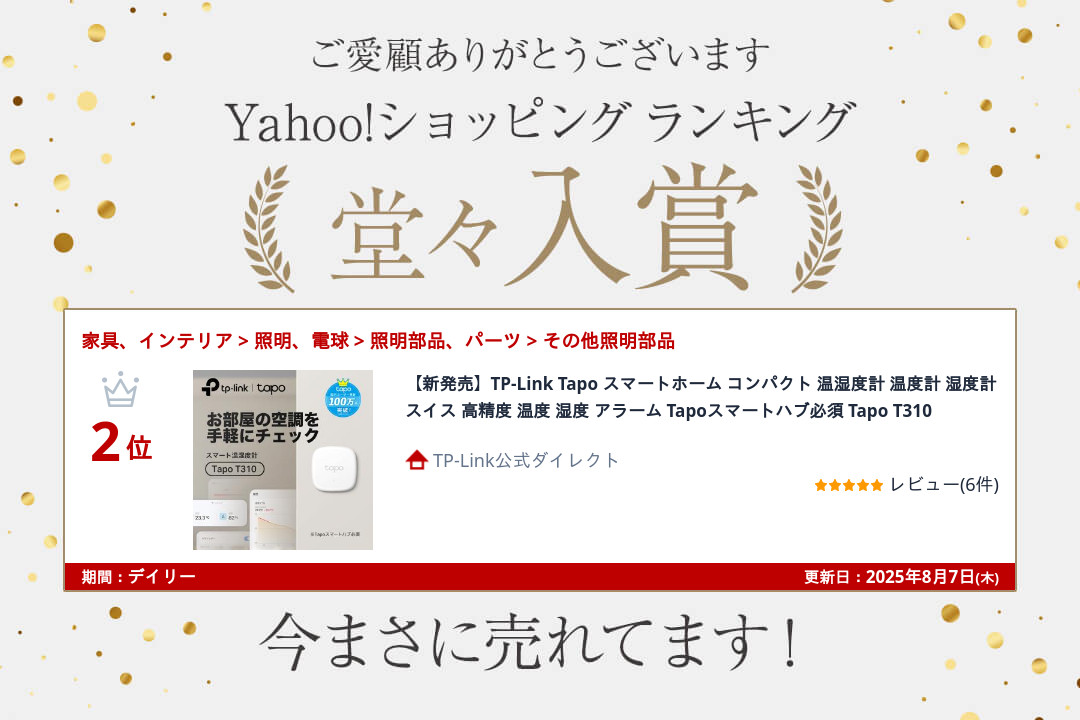 【新発売】TP-Link Tapo スマートホーム コンパクト 温湿度計 温度計 湿度計 スイス 高精度 温度 湿度 アラーム Tapoスマートハブ必須 Tapo T310