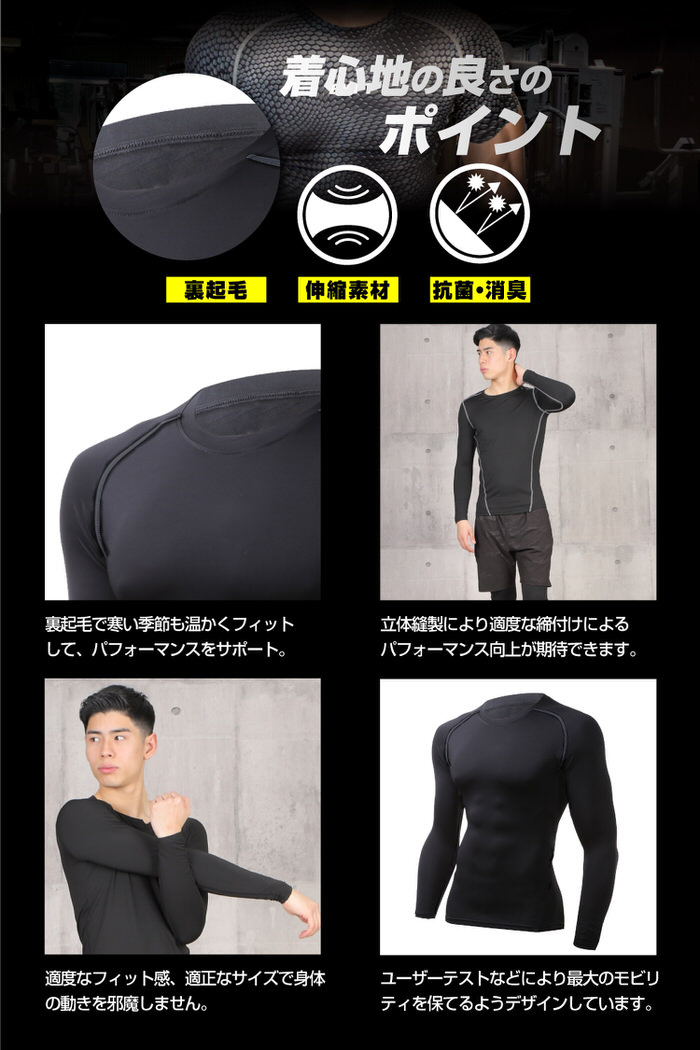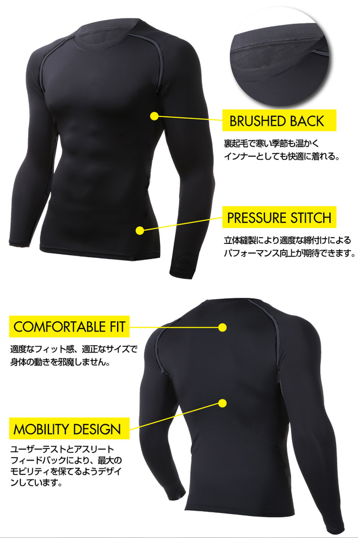 ■ 商品説明 :適度な 着圧 加圧 で 快適 な着心地。 吸汗速乾 の 高機能ウエア で 秋 冬 の寒い季節 にもアクティブに動ける 防寒 保温 性のあるモデル 。 裏起毛 で 暖かい アンダーウェア。シンプル かつ おしゃれ な かっこいい デザイン 。 プレゼント にも最適です