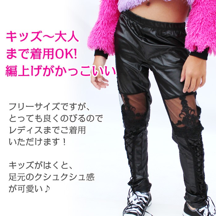 キッズダンス衣装 在庫限り 編み上げ ニーハイ レギンス ダンス衣装 ガールズ キッズ ダンス 衣装 サルエル パンツ ずぼん ズボン 子供 ジュニア 子供服