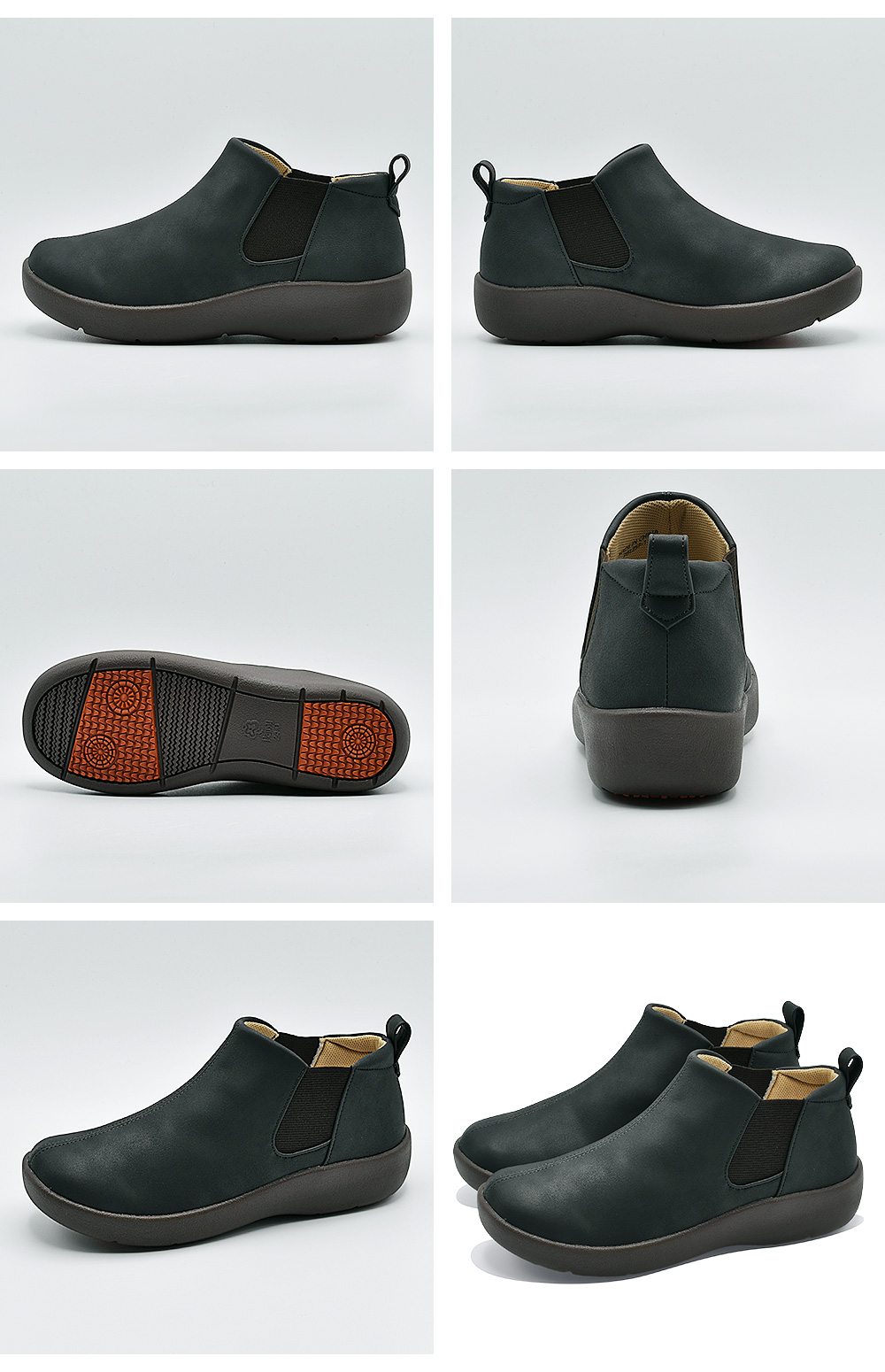 落ち着いた配色とラウンドトゥが優しい印象を与えるゆったり設計の4Eシューズ。