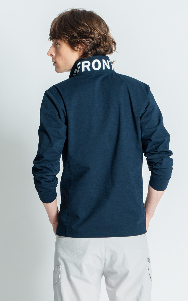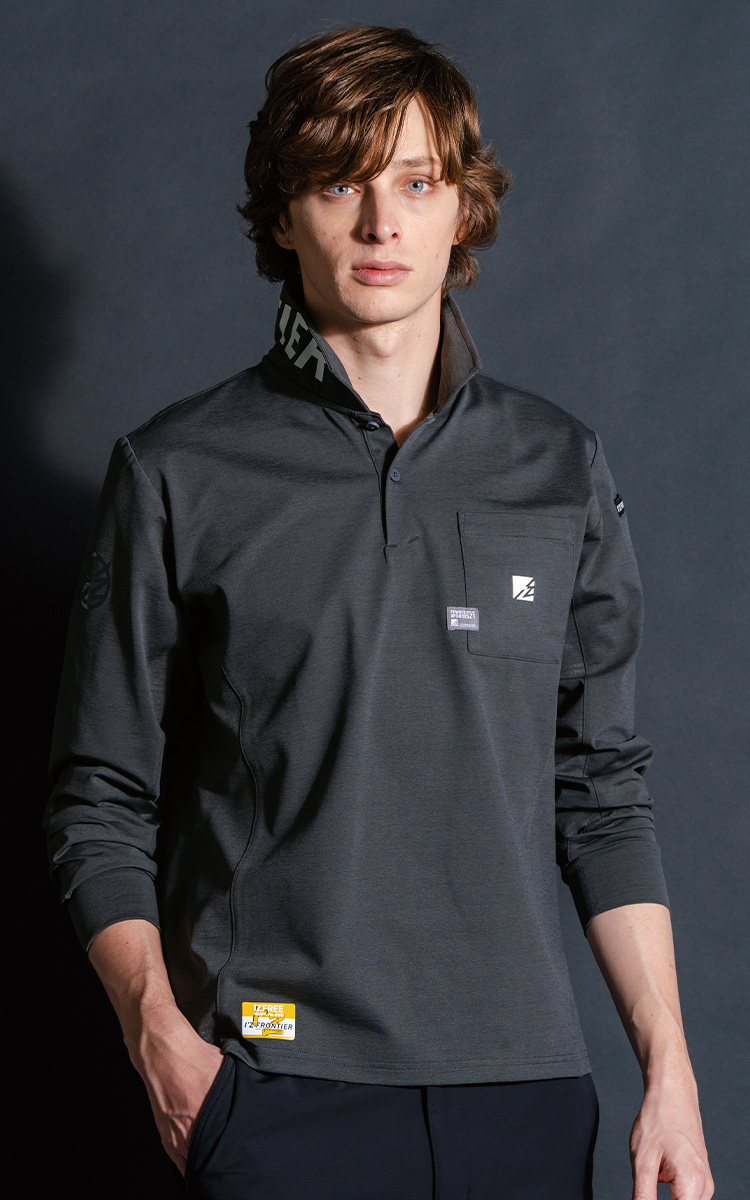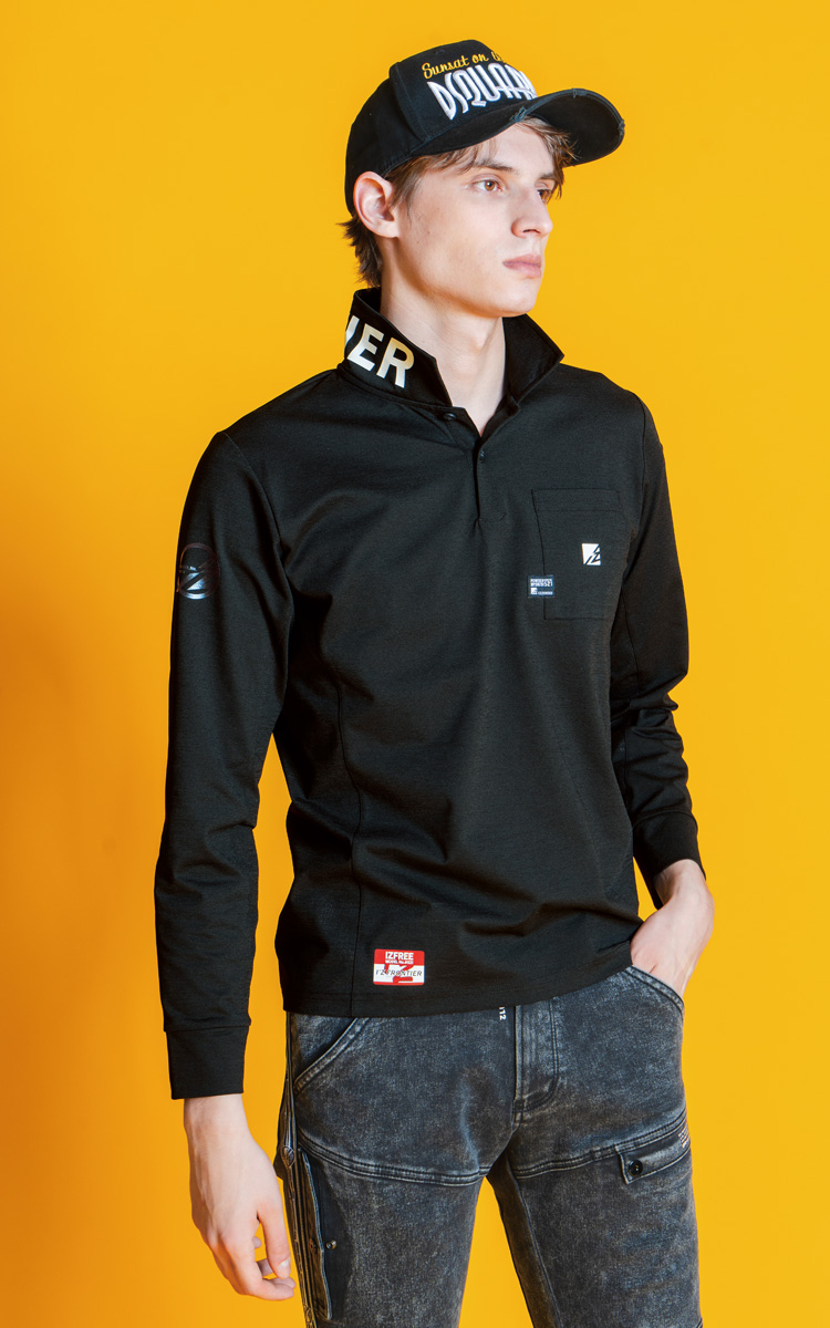 を効果的に配し、衿元にも大胆なロゴプリントを施す等、隙のない