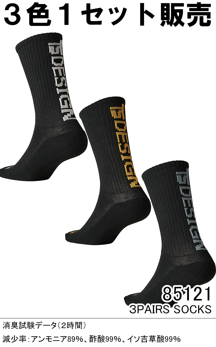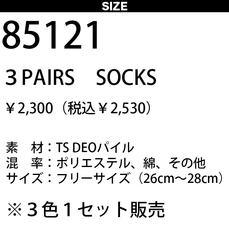 TS DESIGN 藤和 強力消臭ソックス3色セット 85121 3足1セット靴下 消臭機能付き ストレッチ 年間対応 オールシーズン 春夏 メンズ 作業服 作業着 ソックス