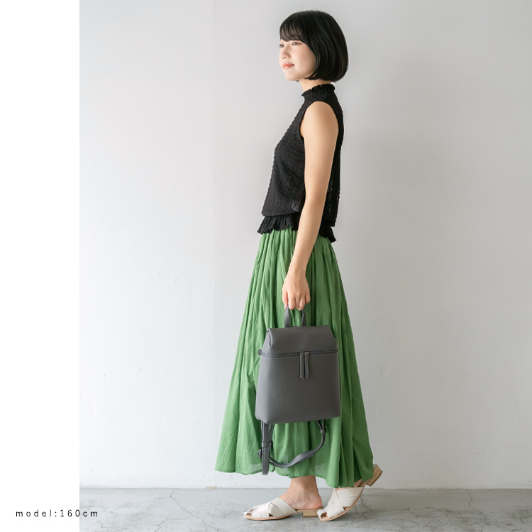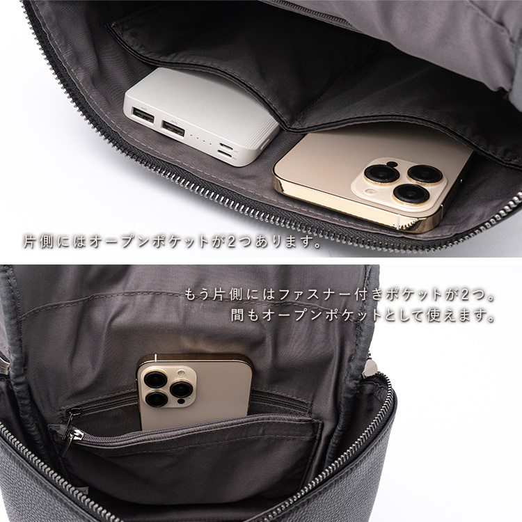 見た目以上の収納力で、財布やスマホ、ポーチなどの必需品をすっきり収納。実用性もばっちり。