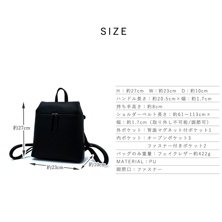●バッグ重量:フェイクレザー約422g、ナイロン約351g