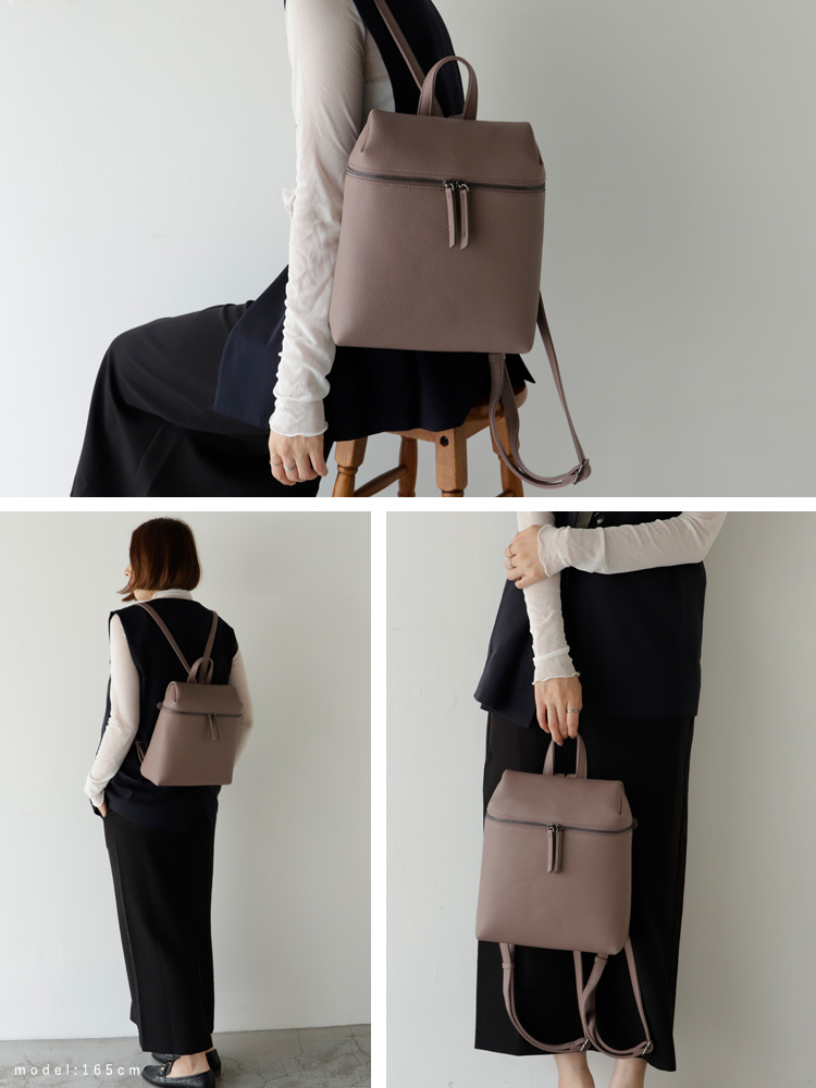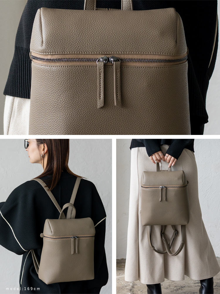 リュックに抵抗のある方でも持ちやすい、シンプルで洗練されたデザイン。どんなコーデにも自然にマッチします。