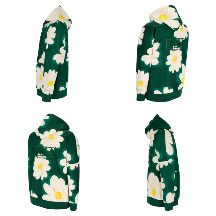 ダブルフェイスのボンディング素材を使用したスウェットフルジップジャケット。右胸のバンブルビー刺繍はワッペン風に表現し、背中には刺繍でスクエアビッググラフィックを配置。同色使いの刺繍でシンプルで高級感のあるアイテムに。トレンド感のあるルーズシルエットでラフな着こなしも。
