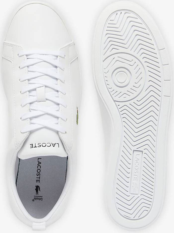 ラコステから提案するホワイト系コートスニーカー。際立つサイドのワニロゴがおしゃれです。